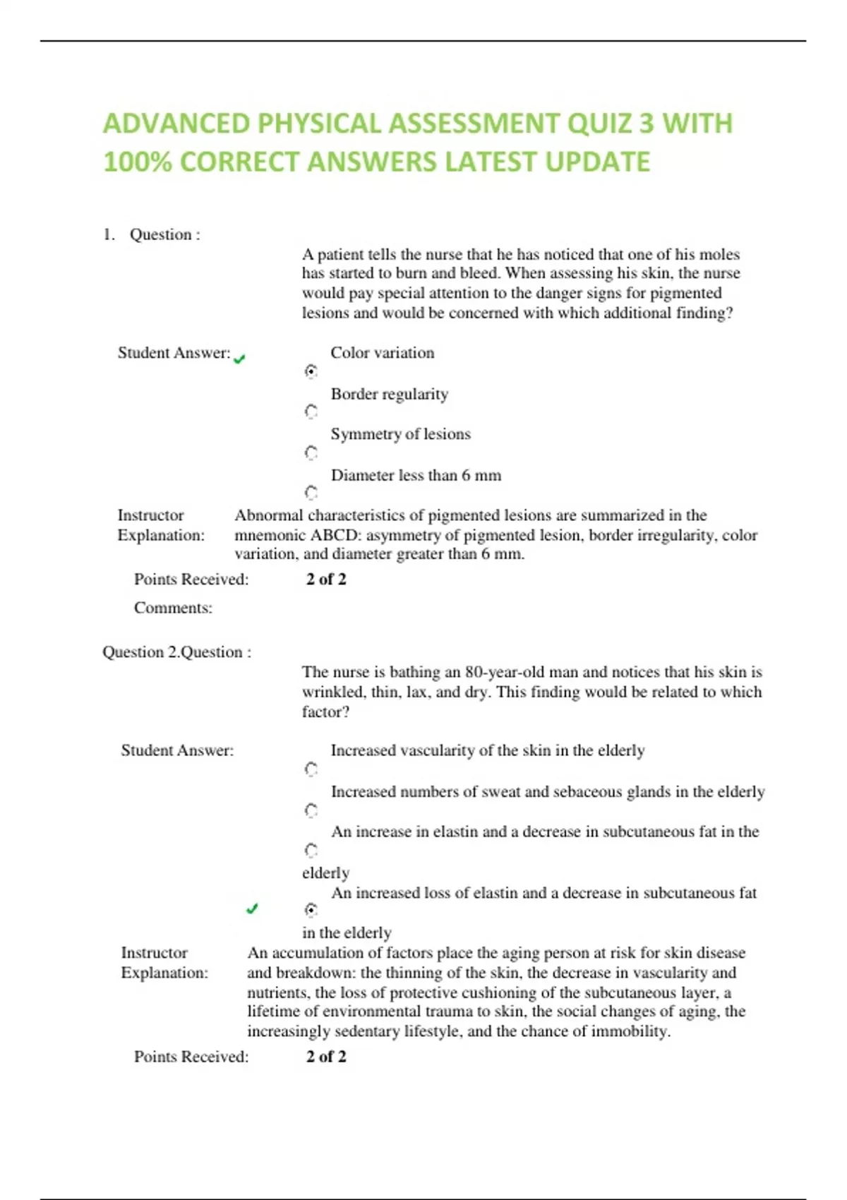 Instructor An accumulation of factors place the aging person at risk for skin disease