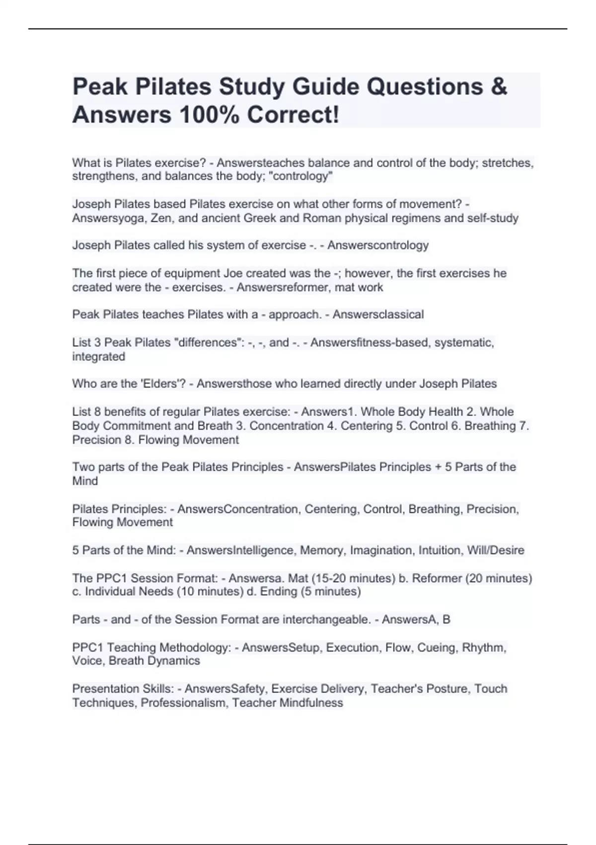 Peak Pilates Study Guide Questions & Answers 100% Correct!