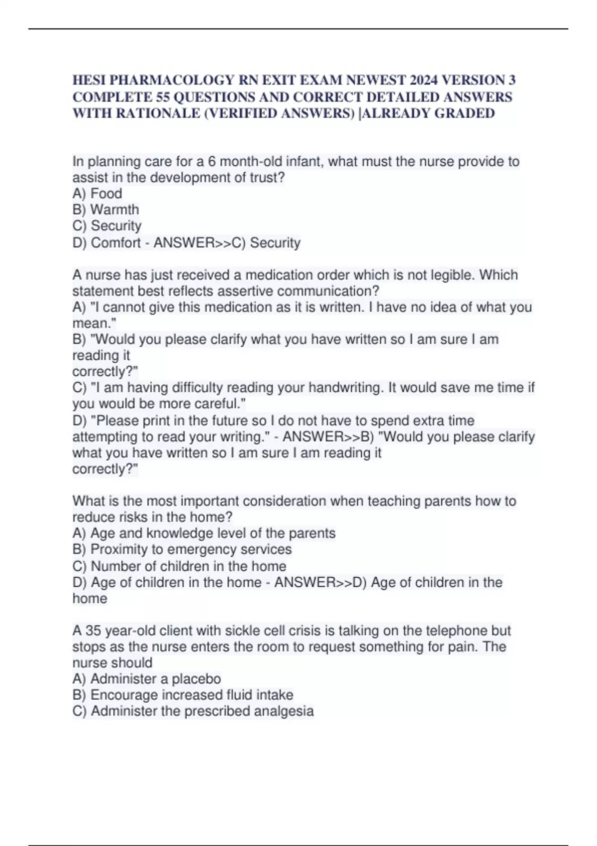 HESI PHARMACOLOGY RN EXIT EXAM NEWEST 2024 VERSION 3 COMPLETE 55 QUESTIONS AND CORRECT DETAILED ANSWERS WITH RATIONALE (VERIFIED ANSWERS) |ALREADY GRADED A+