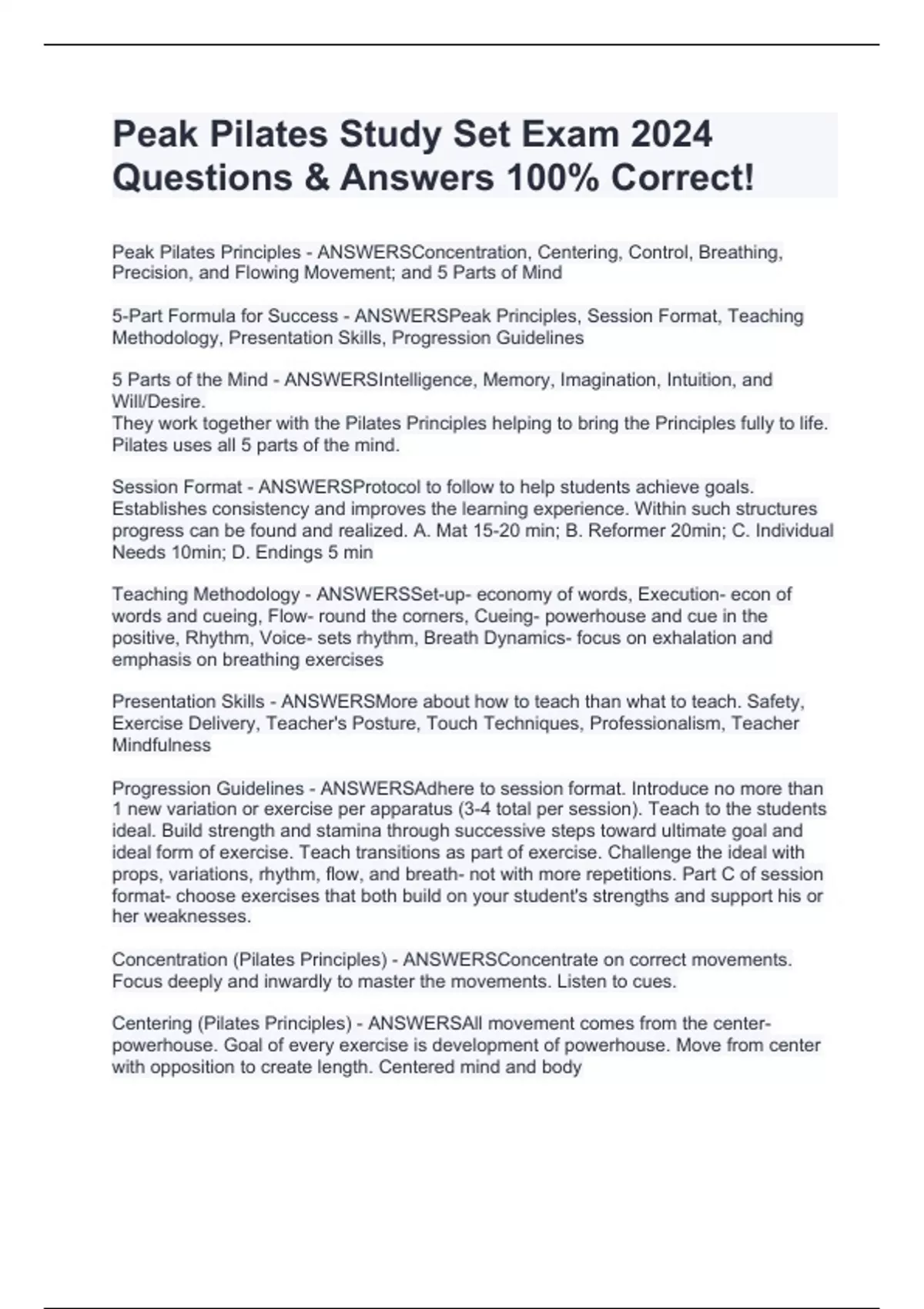 Peak Pilates Study Set Exam 2024 Questions & Answers 100% Correct!