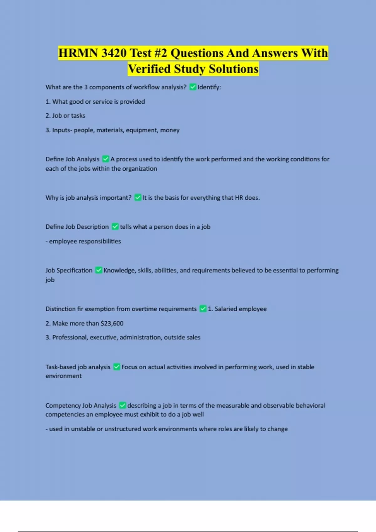 HRMN 3420 Test #2 Questions And Answers With Verified Study Solutions HRMN 3420 Test #2 Questions And Answers With Verified Study Solutions