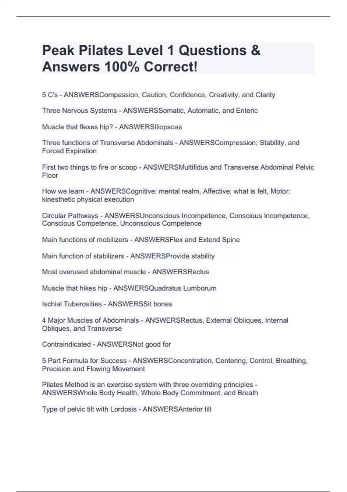 Peak Pilates Level 1 Questions & Answers 100% Correct!