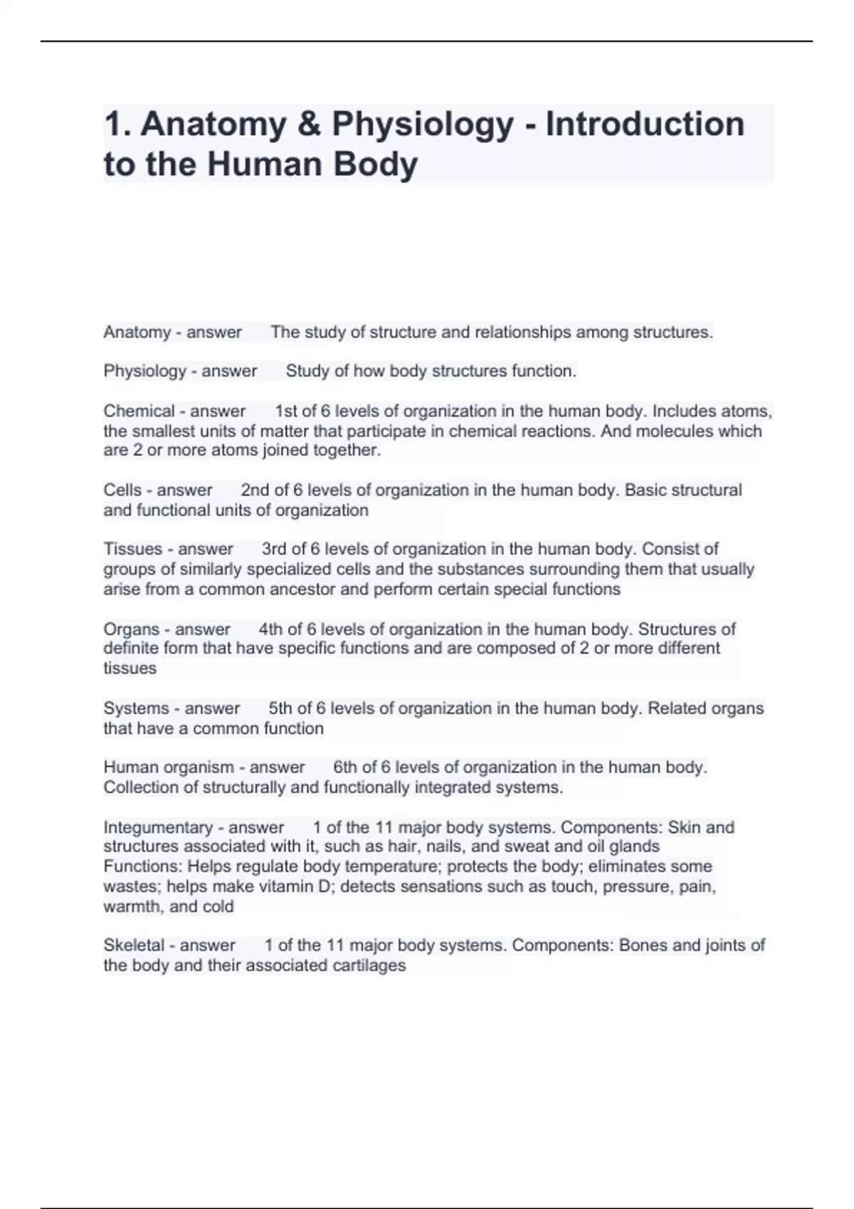 1. Anatomy & Physiology - Introduction to the Human Body Questions and Answers 2024