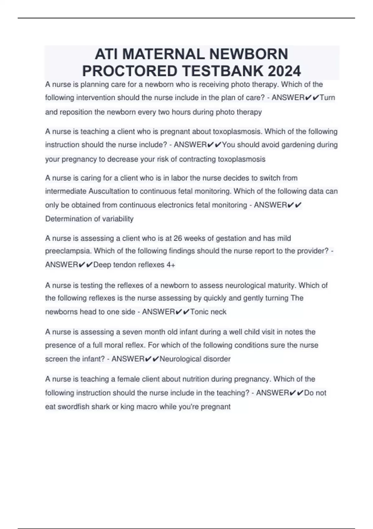 ATI MATERNAL NEWBORN PROCTORED TESTBANK 2024