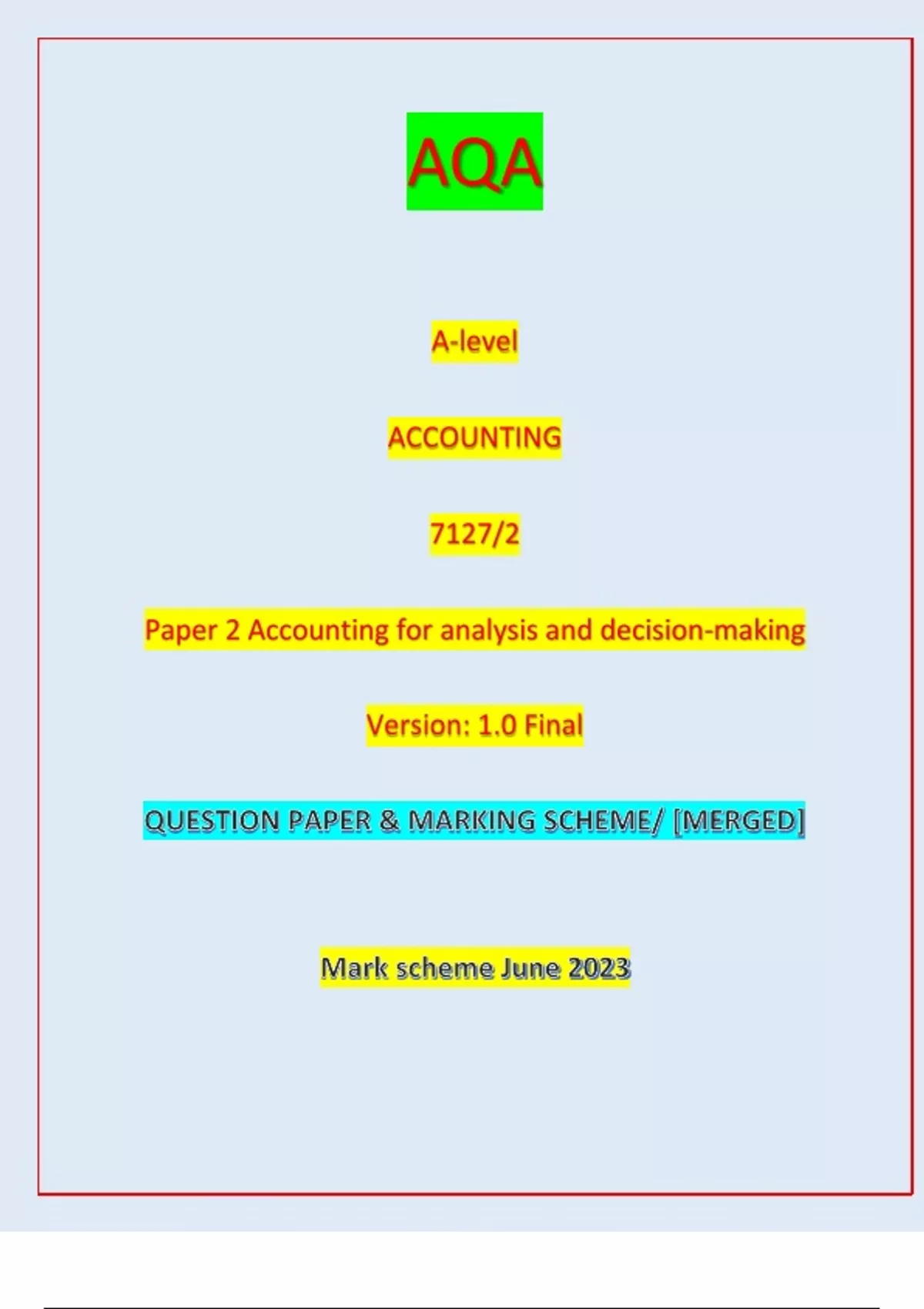 Paper 2 Accounting for analysis and decision-making