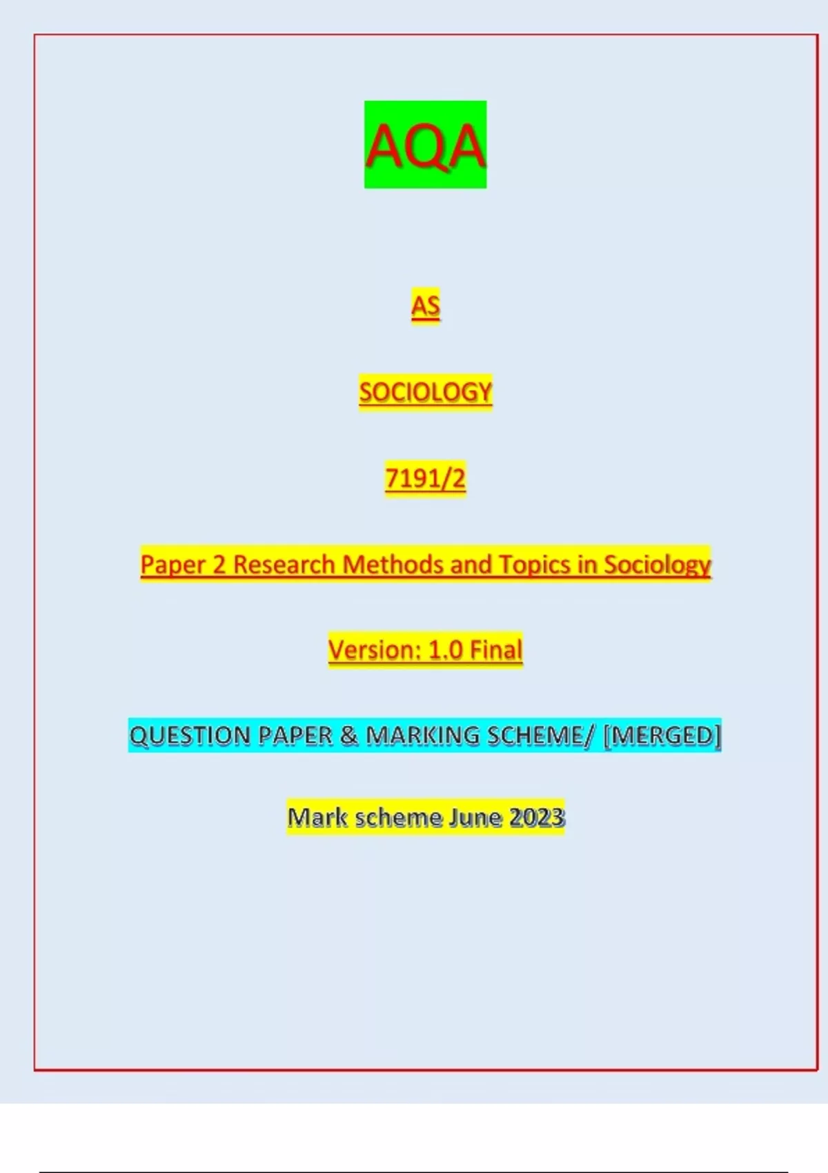 Paper 2 Research Methods and Topics in Sociology