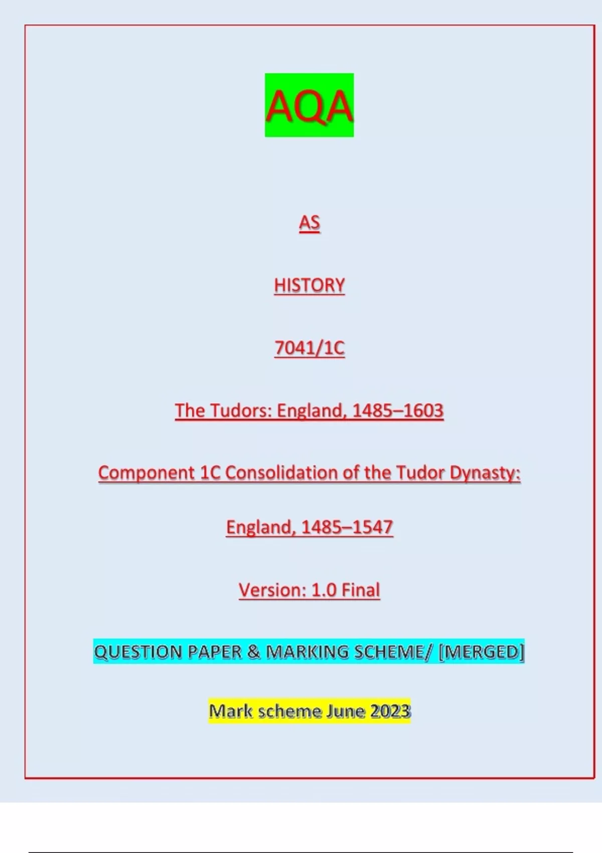 AQA AS HISTORY 7041/1C The Tudors: England, 1485–1603 Component 1C Consolidation of the Tudor Dynasty: England, 1485–1547 Version: 1.0 Final IB/M/Jun23/E3 7042/2Q A-level HISTORY