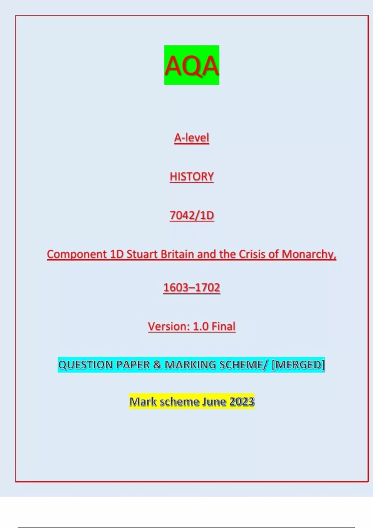 Component 1D Stuart Britain and the Crisis of Monarchy,