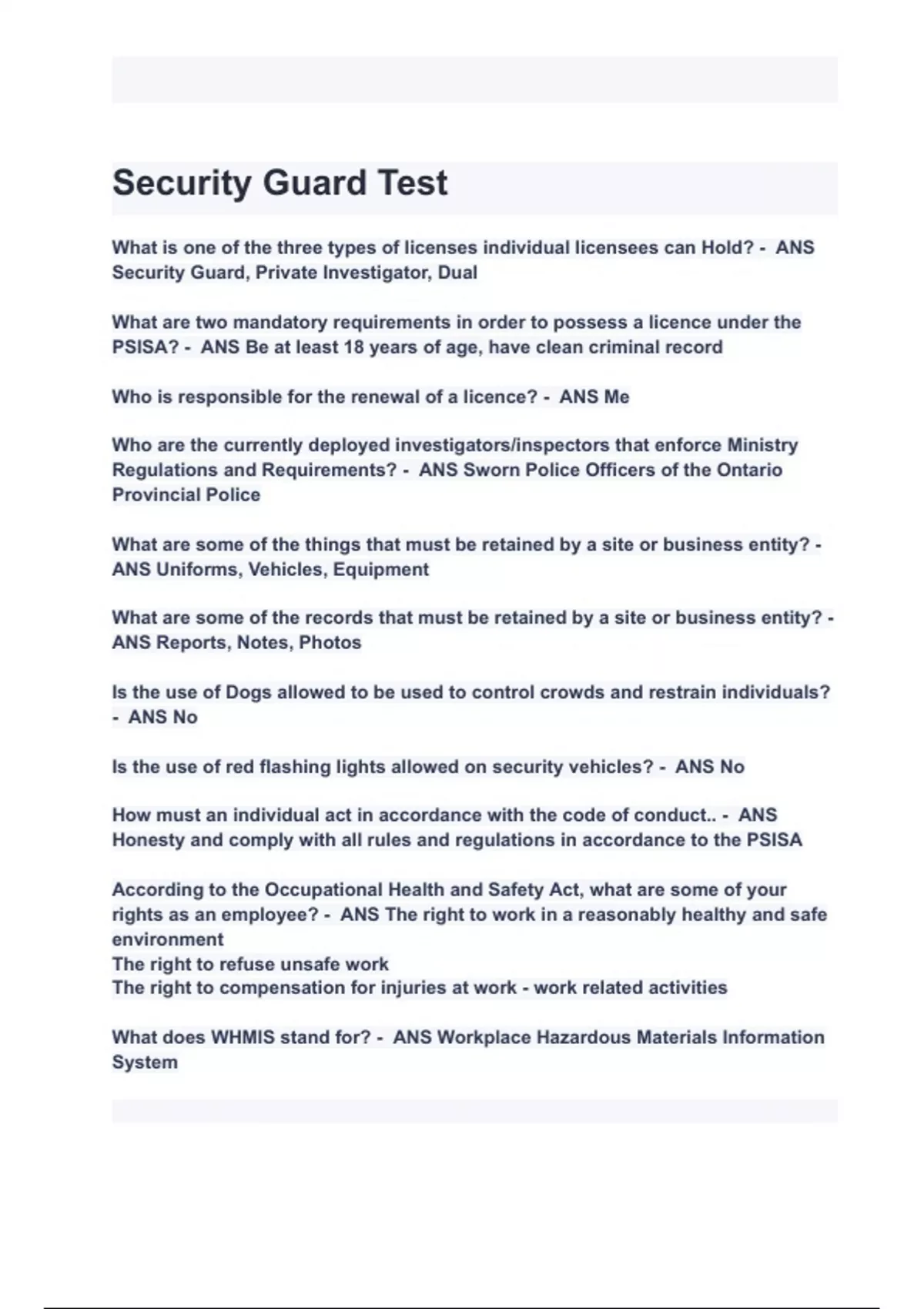 Security Guard Test Questions with correct Answers 2024/2025( A+ GRADED 100% VERIFIED).