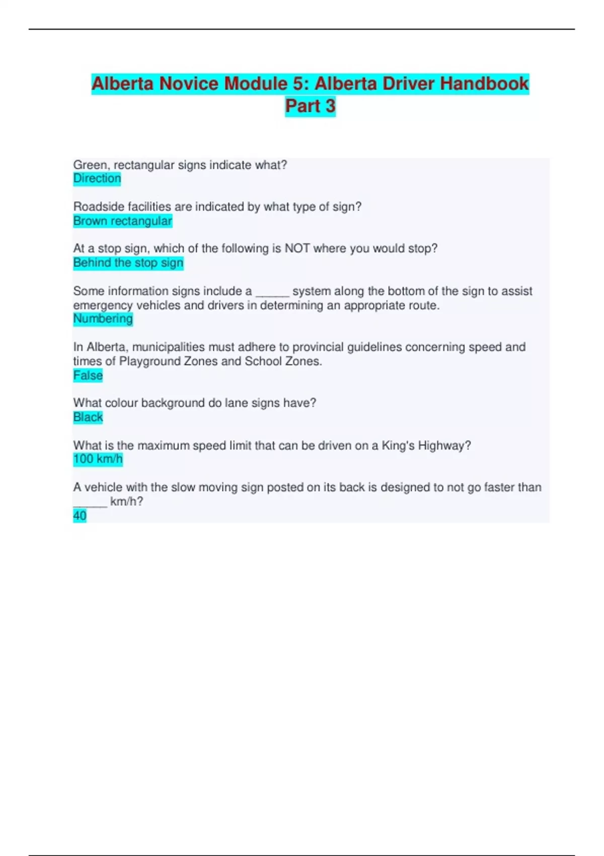 Alberta Novice Module 5: Alberta Driver Handbook Part 3 - Q & A