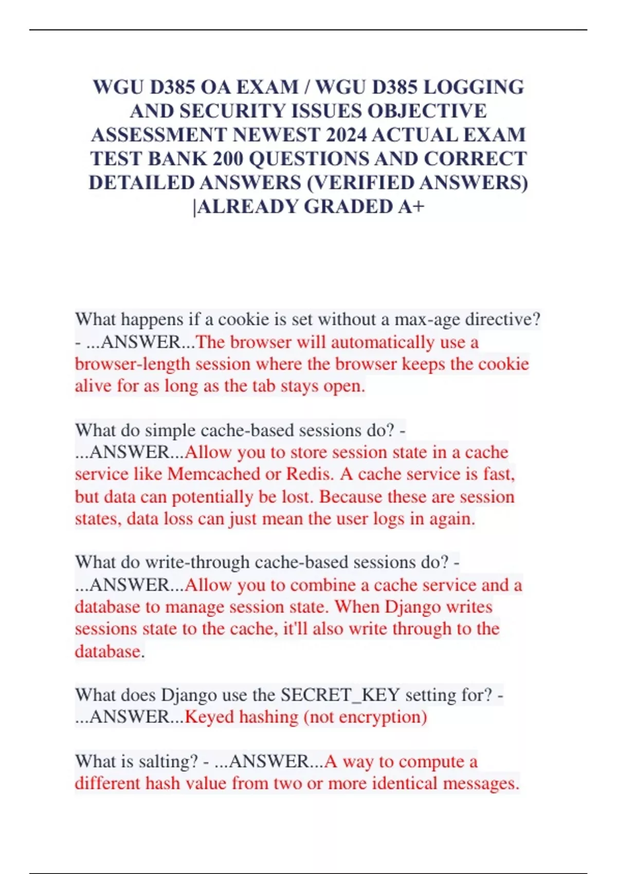 WGU D385 OA EXAM / WGU D385 LOGGING AND SECURITY ISSUES OBJECTIVE ASSESSMENT NEWEST 2024 ACTUAL EXAM TEST BANK 200 QUESTIONS AND CORRECT DETAILED ANSWERS (VERIFIED ANSWERS) |ALREADY GRADED A+