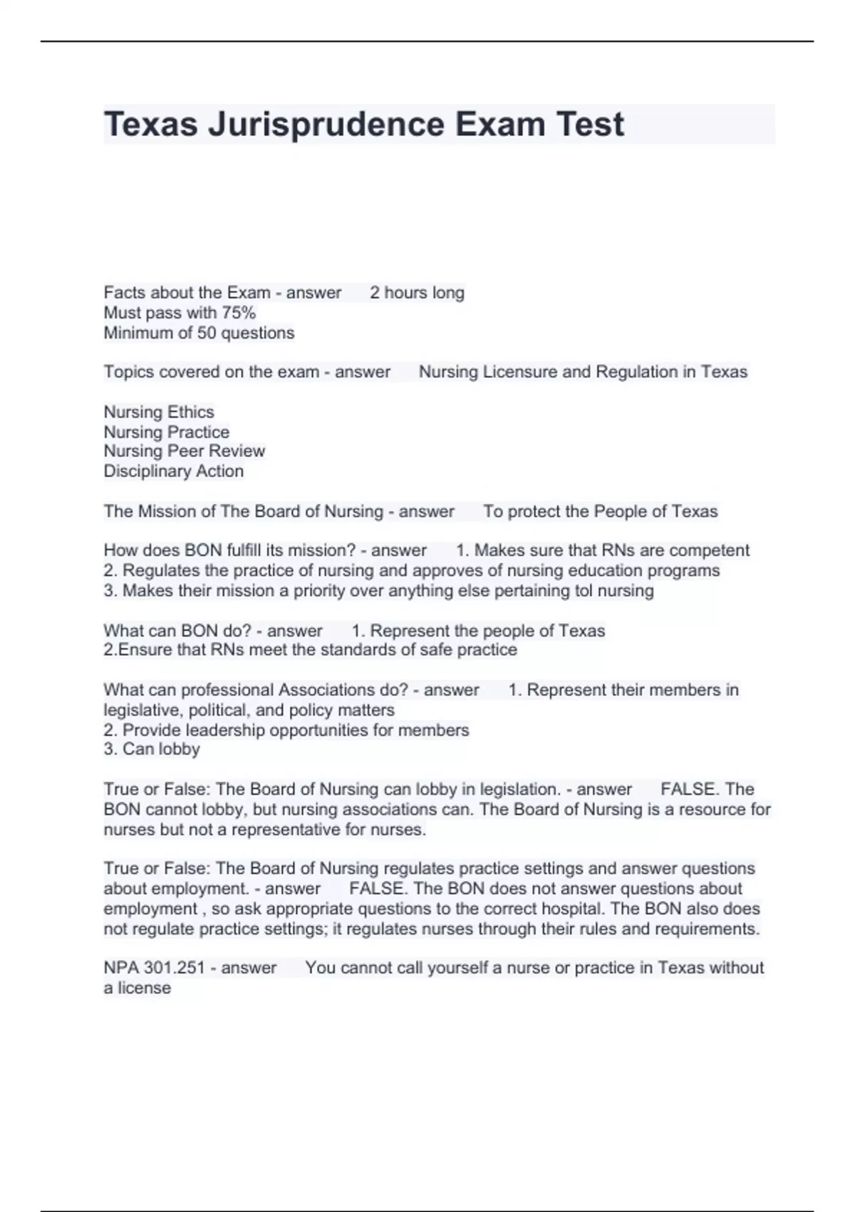 Texas Jurisprudence Exam Test Questions with correct 2024