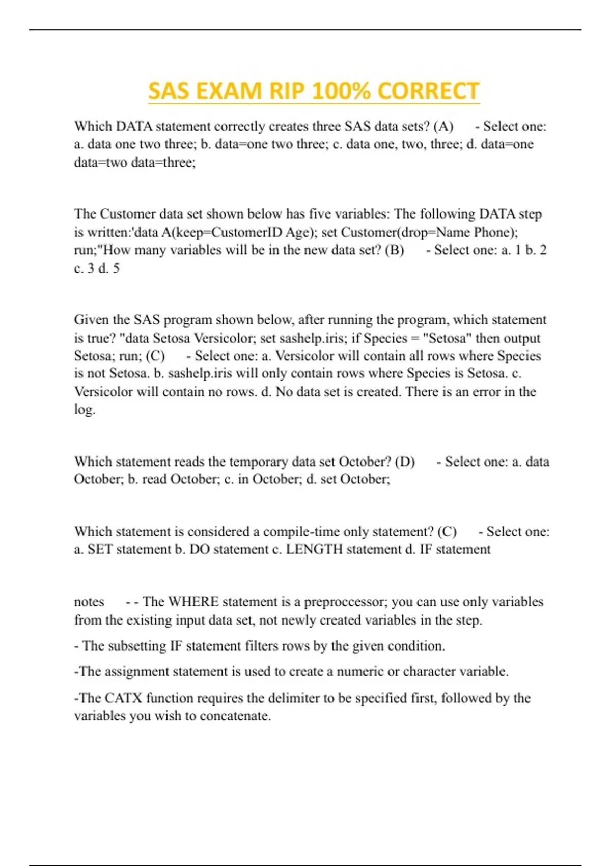 SAS EXAM RIP 100% CORRECT