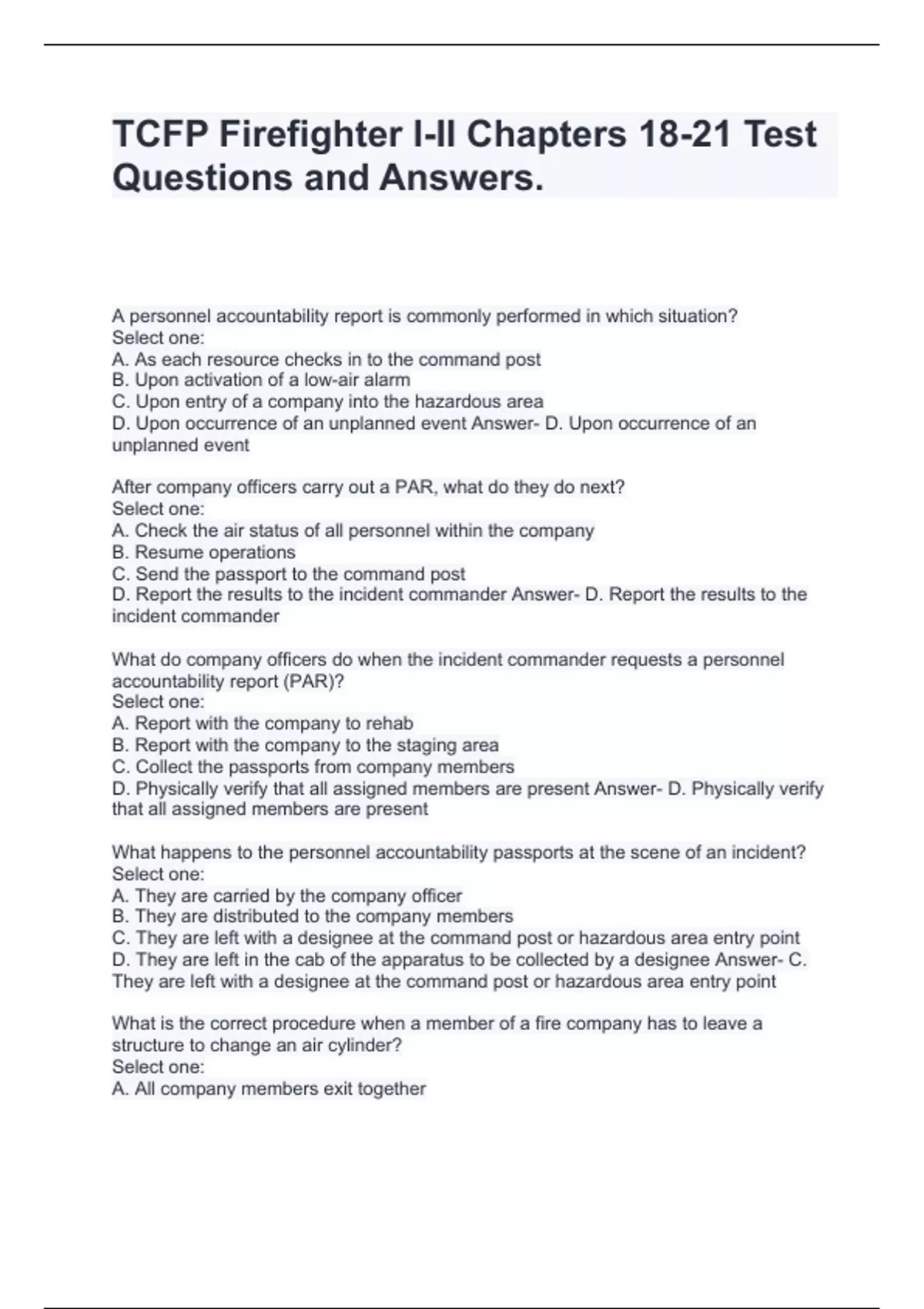 TCFP Firefighter I-II Chapters 18-21 Test Questions and Answers.