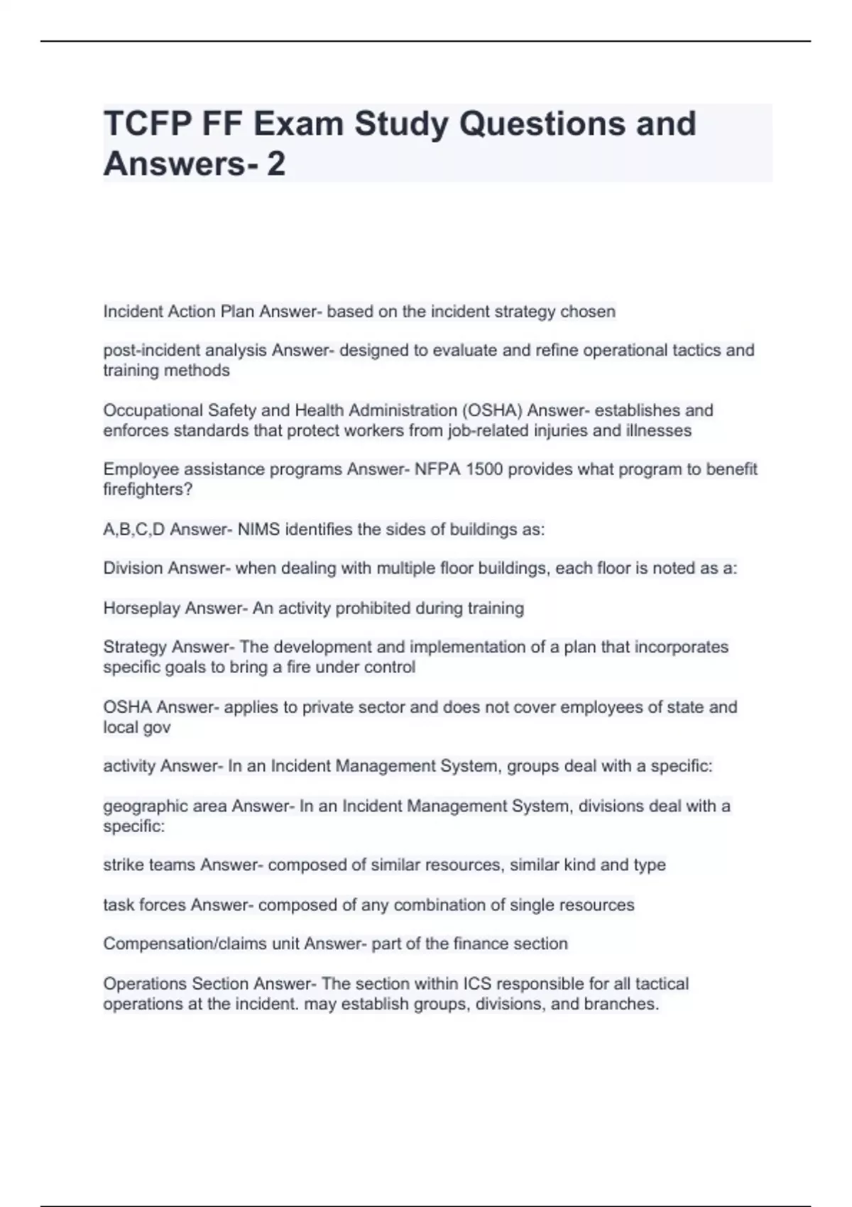 TCFP FF Exam Study Questions and Answers-