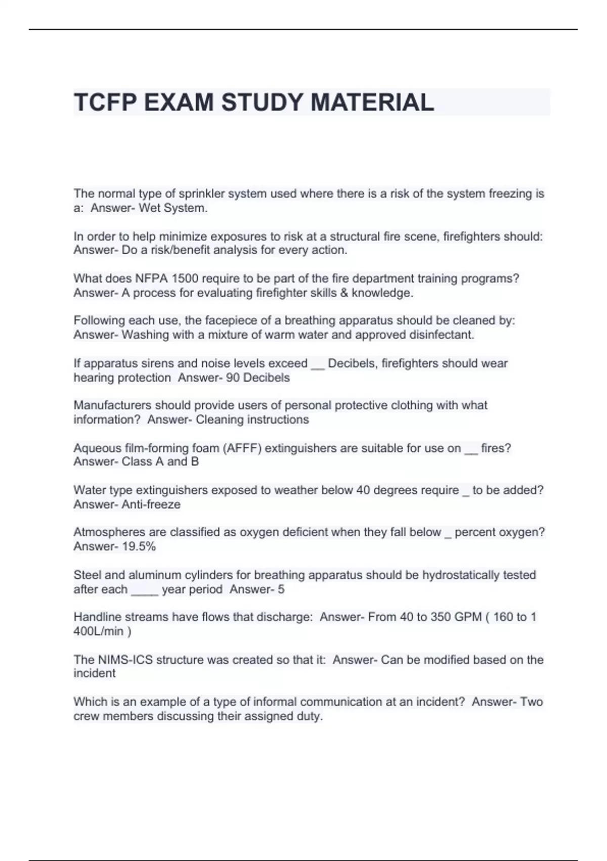 TCFP EXAM STUDY MATERIAL
