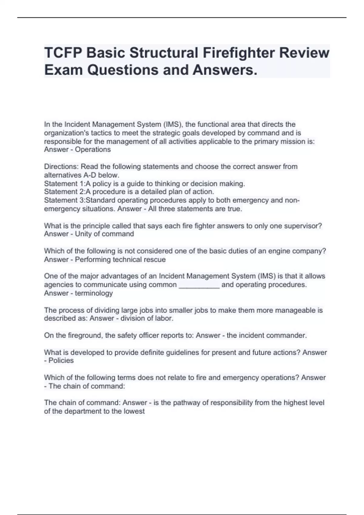 TCFP Basic Structural Firefighter Review Exam Questions and Answers
