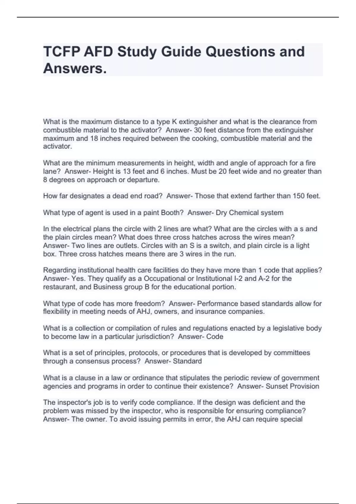 TCFP AFD Study Guide Questions and Answers