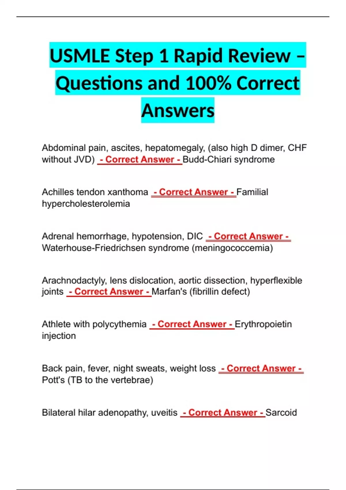 USMLE Step 1 Rapid Review – Questions and 100% Correct Answers