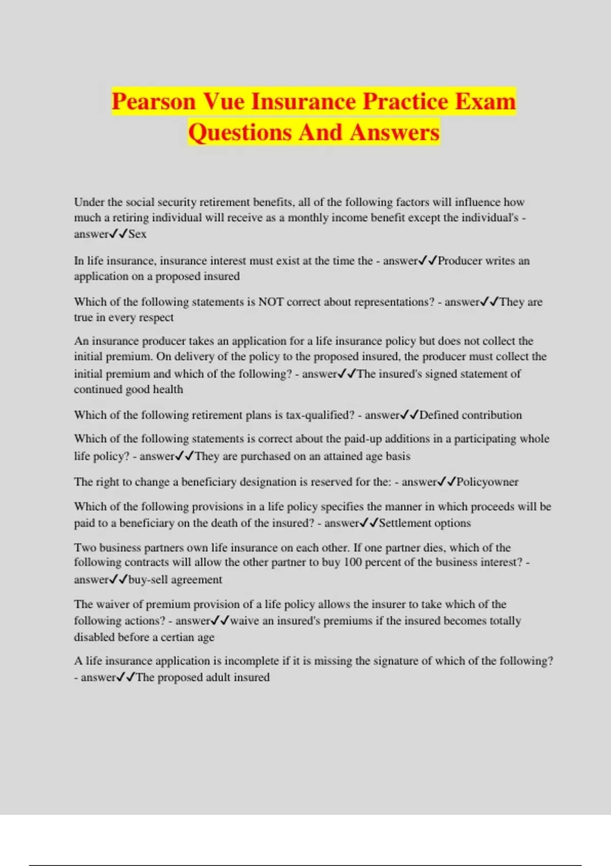 Pearson Vue Insurance Practice Exam Questions And Answers
