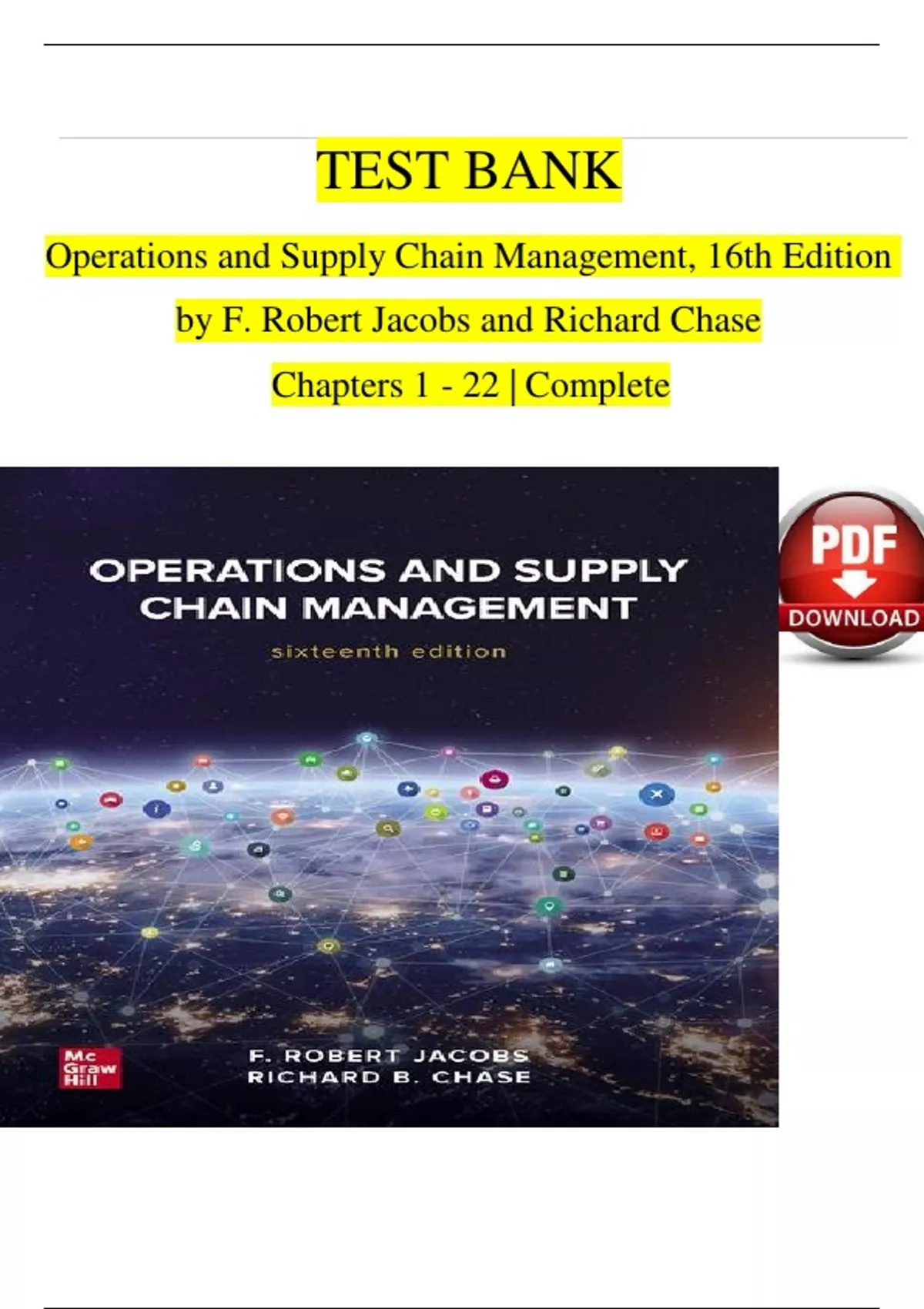 TEST BANK For Operations and Supply Chain Management, 16th Edition by F. Robert Jacobs and Richard Chase, Verified Chapters 1 - 22, Complete Newest Version