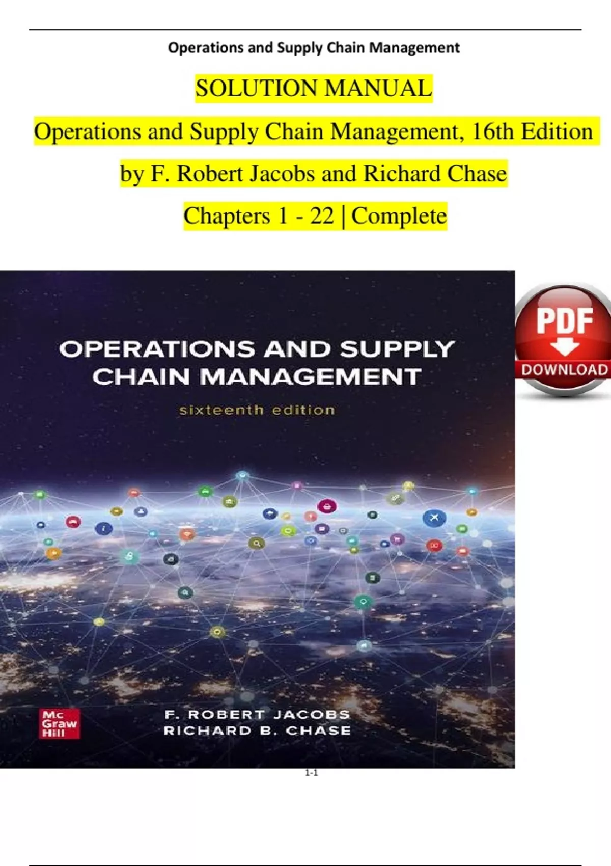 Solution Manual For Operations and Supply Chain Management, 16th Edition by F. Robert Jacobs and Richard Chase, Verified Chapters 1 - 22, Complete Newest Version