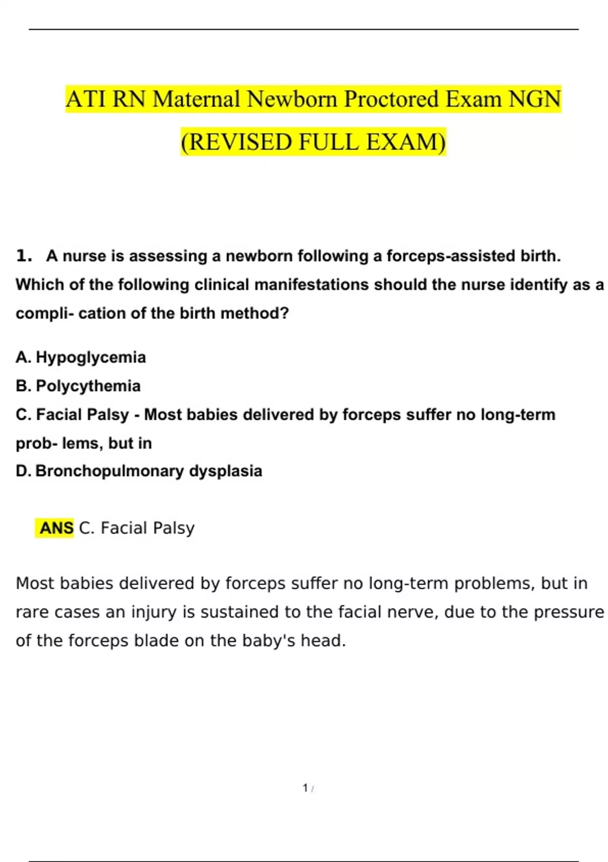 - ATI RN Maternal Newborn 2019 With NGN