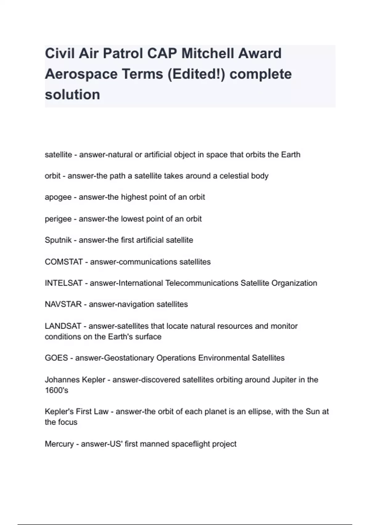 Civil Air Patrol CAP Mitchell Award Aerospace Terms (Edited!) complete solution