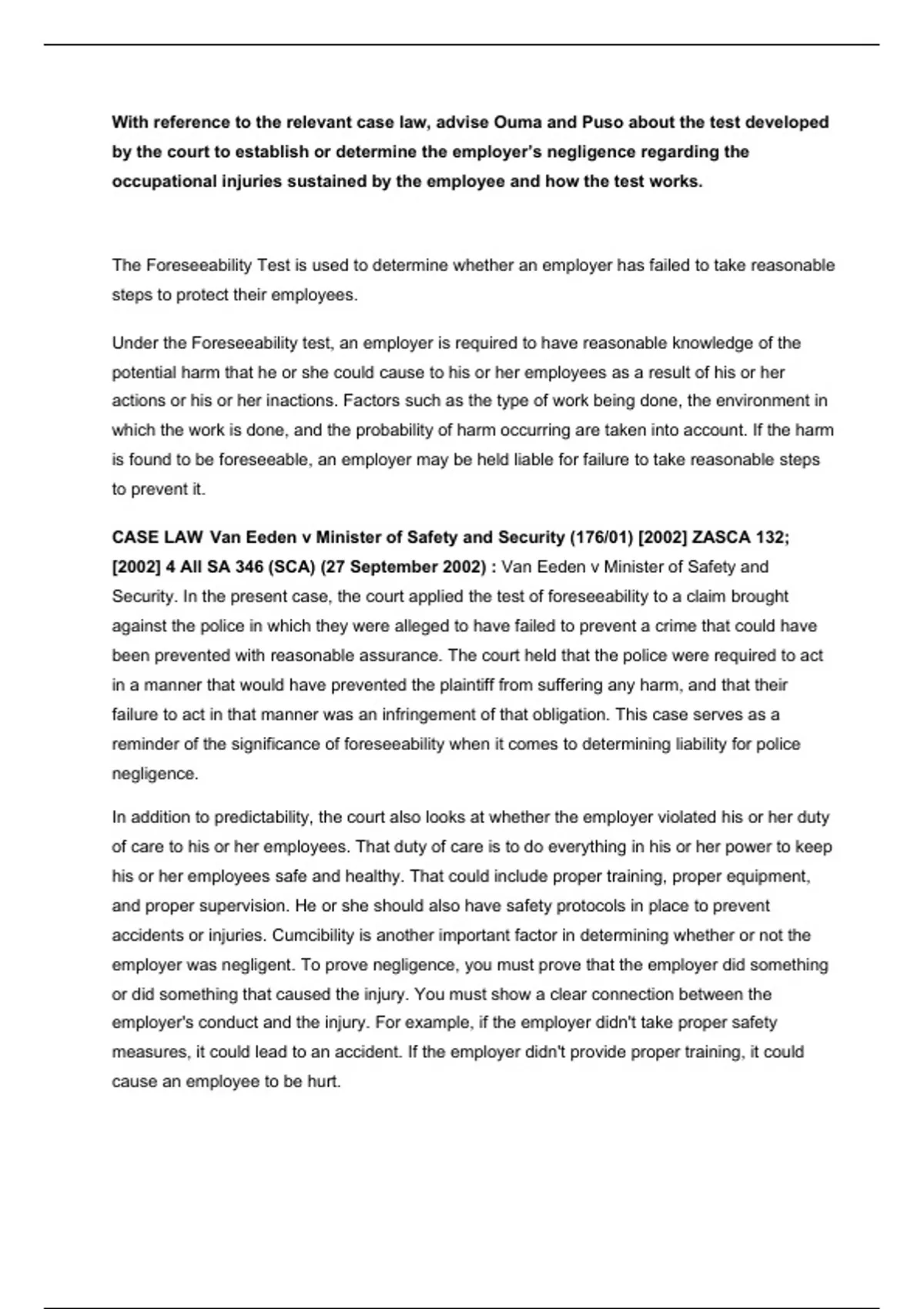 CASE LAW Van Eeden v Minister of Safety and Security (176/01) [2002] ZASCA 132;