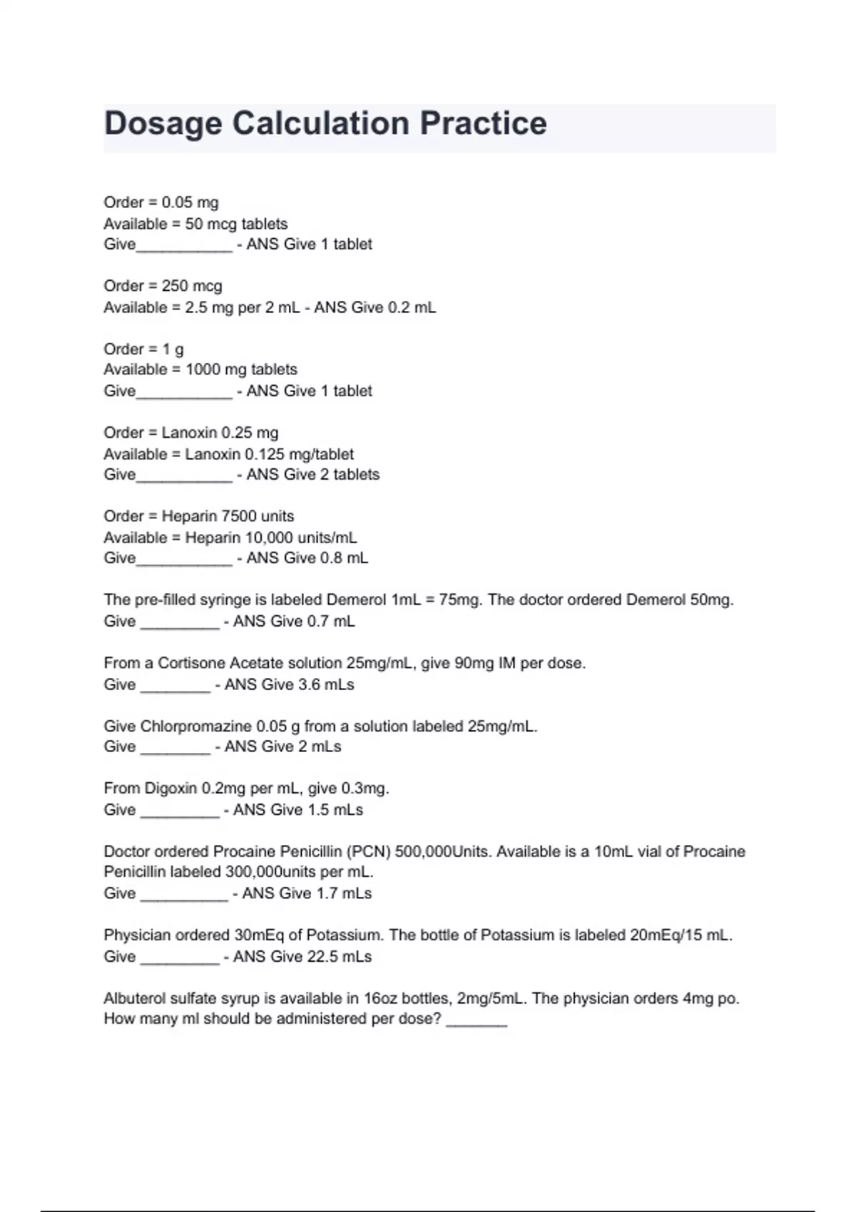 - HESI Dosage Calculations