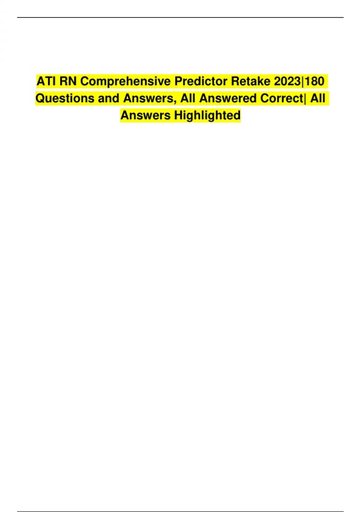 ATI RN Comprehensive Predictor Retake 2023|180 Questions and Answers, All Answered Correct| All Answers Highlighted