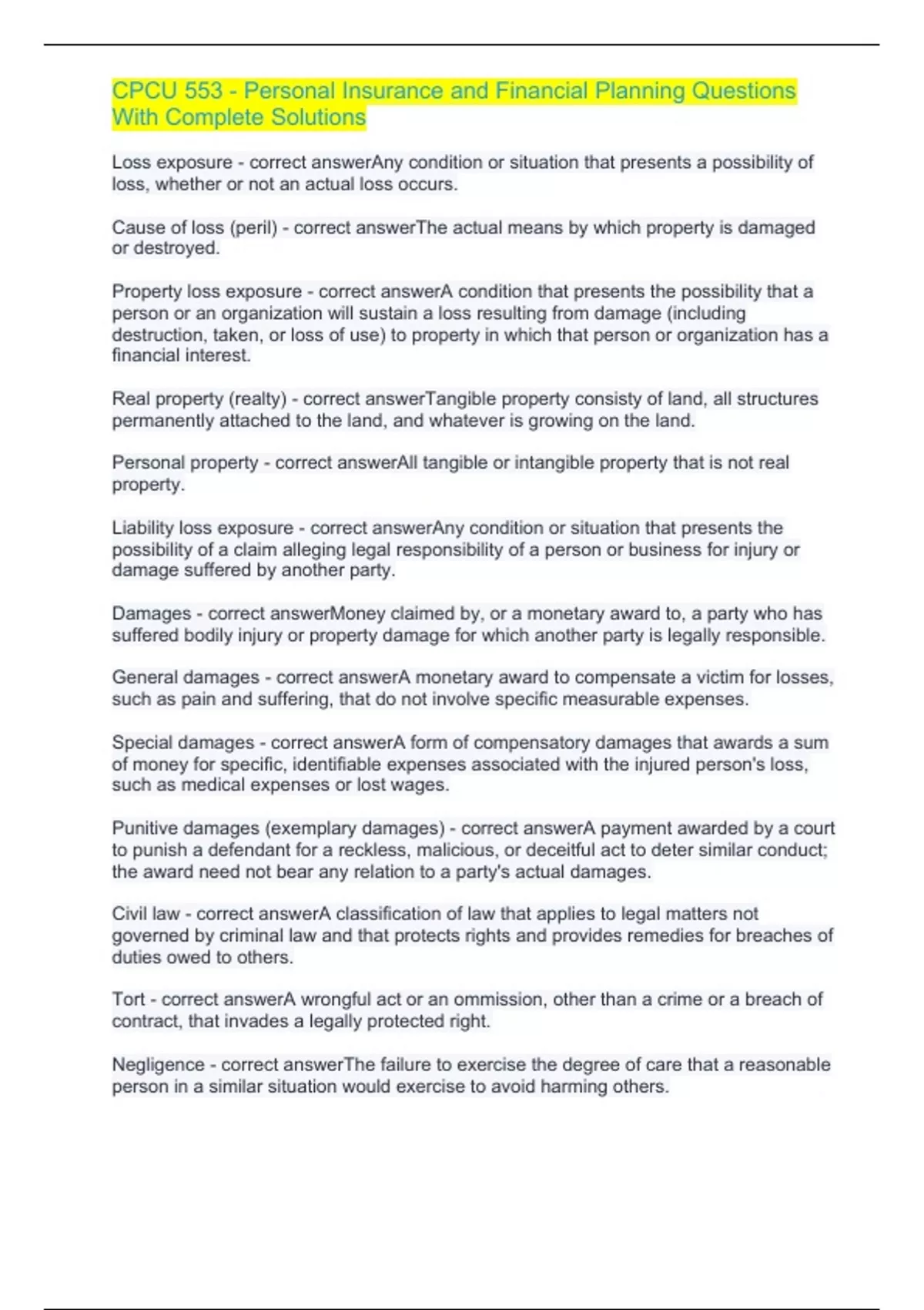 CPCU 553 - Personal Insurance and Financial Planning Questions With Complete SolutionsCPCU 553 - Personal Insurance and Financial Planning Questions With Complete Solutions