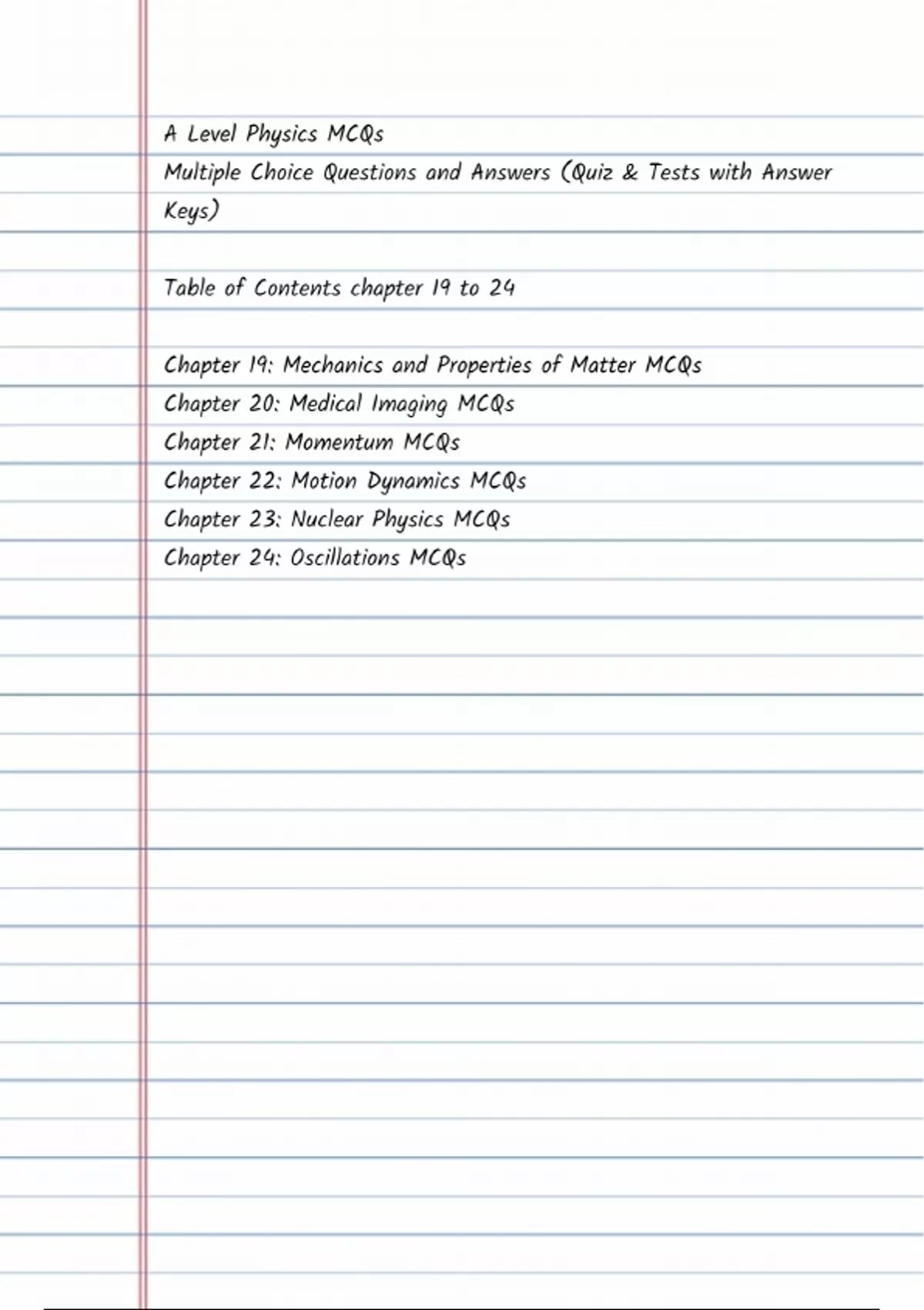 This is my old physics note chapter by chapter a comprehensive collection of multiple-choice questions (MCQs) covering various chapters and topics in physics. Each chapter is dedicated to a specific area of physics, providing a thorough review and practice opportunity for students. Answer keys are provided for easy self-assessment and tracking progress. Whether you're preparing for exams or simply want to reinforce your understanding of physics concepts, this resource is an invaluable tool.