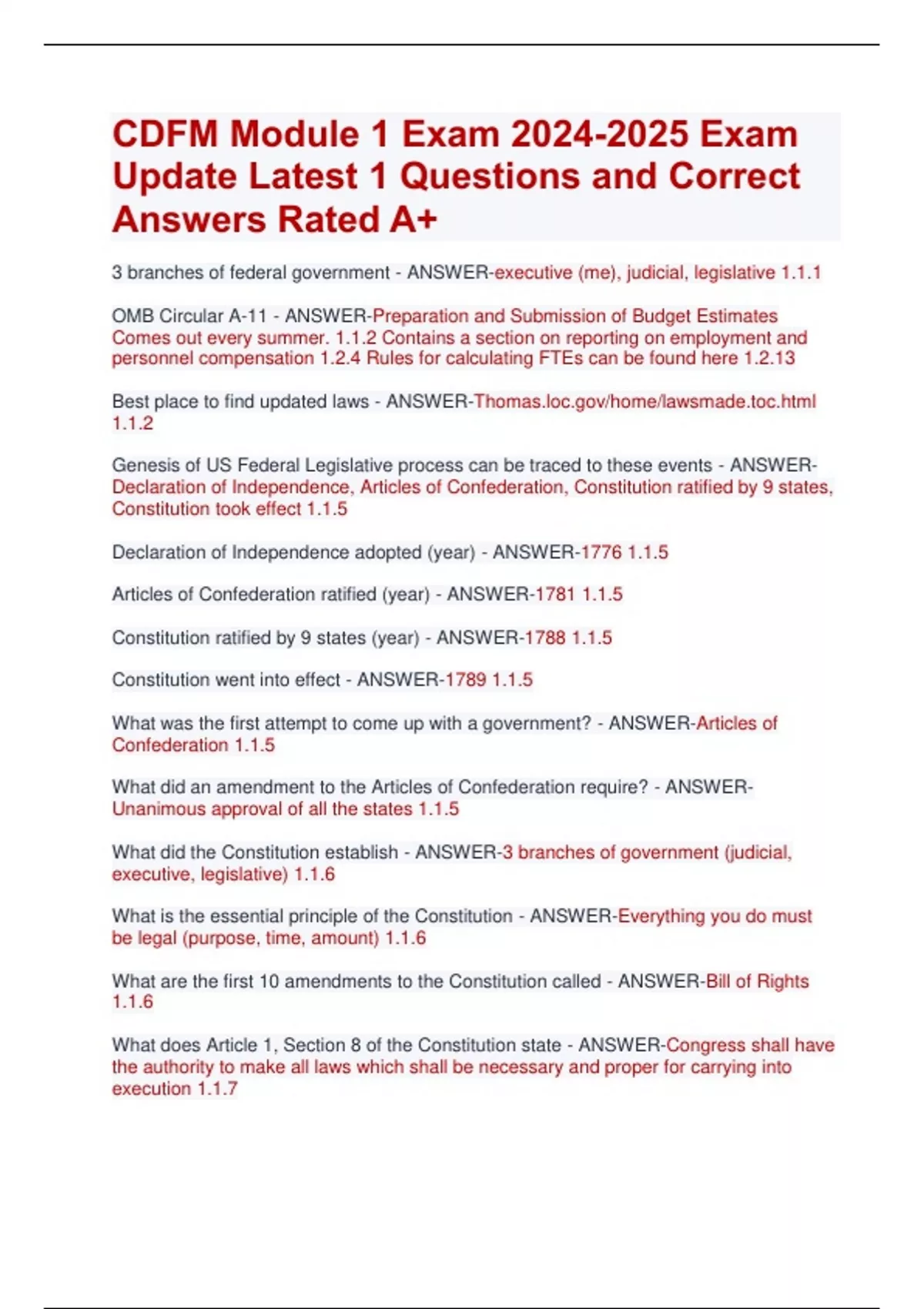 CDFM Module 1+ Exam Update Latest 2 Questions and Correct Answers Rated A+