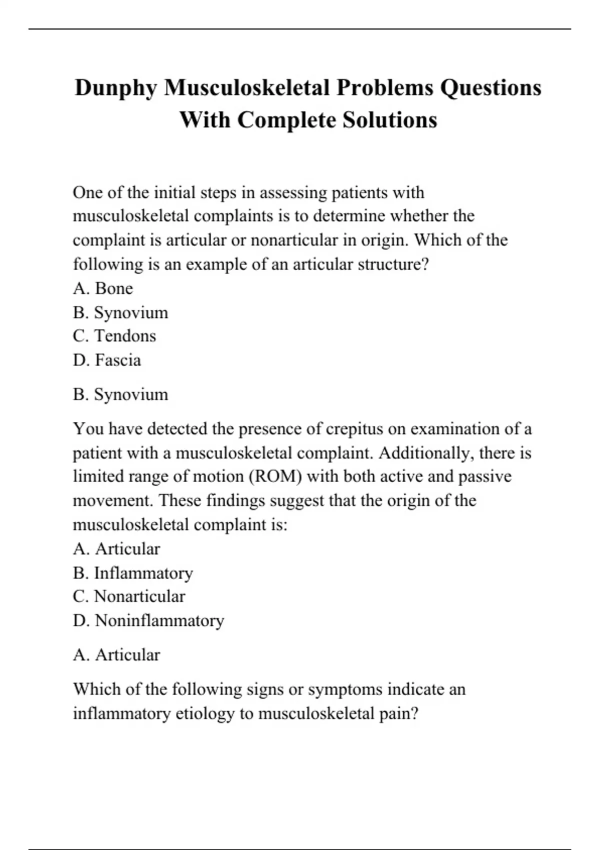 Dunphy Musculoskeletal Problems Questions With Complete Solutions