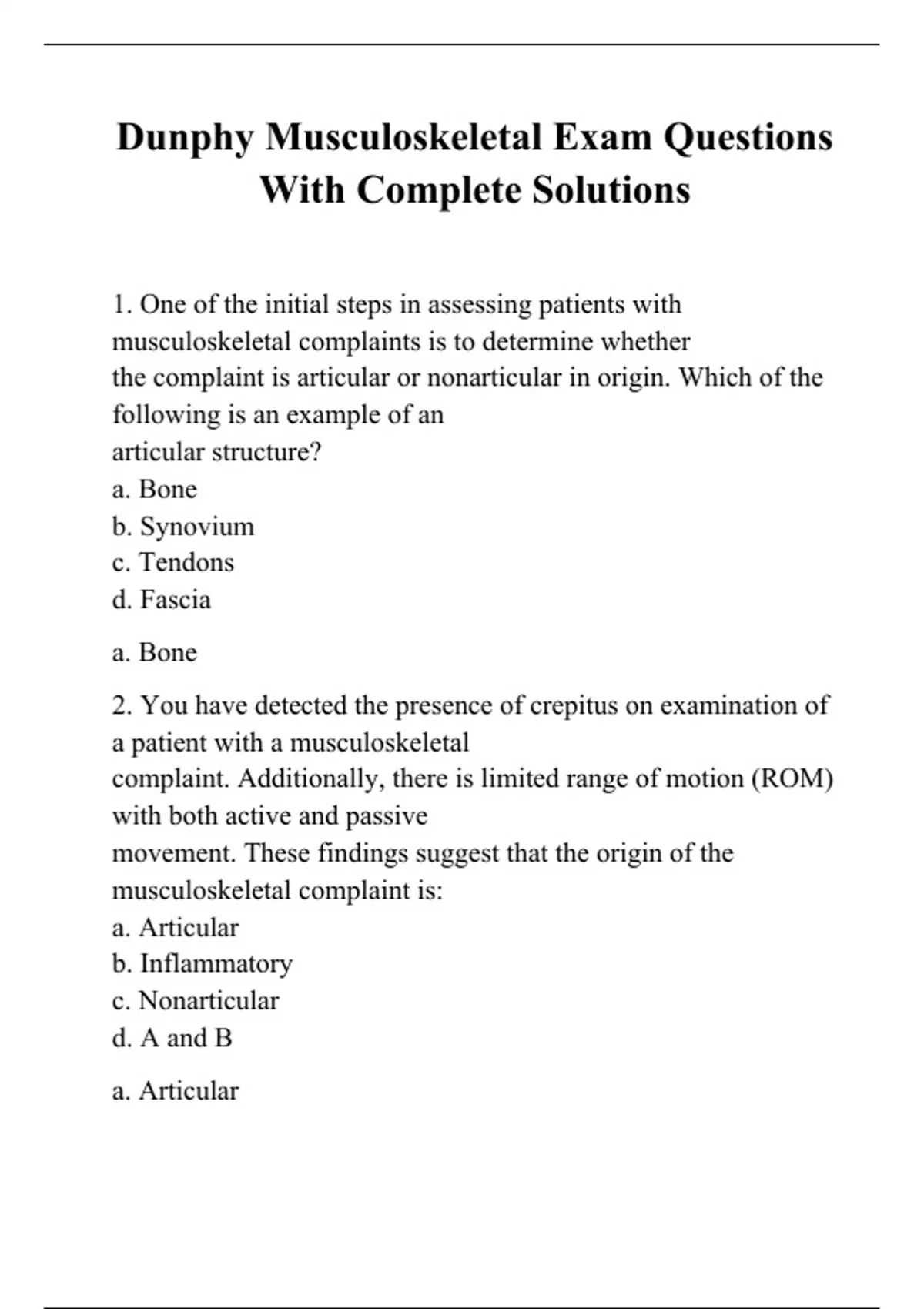 Dunphy Musculoskeletal Exam Questions With Complete Solutions