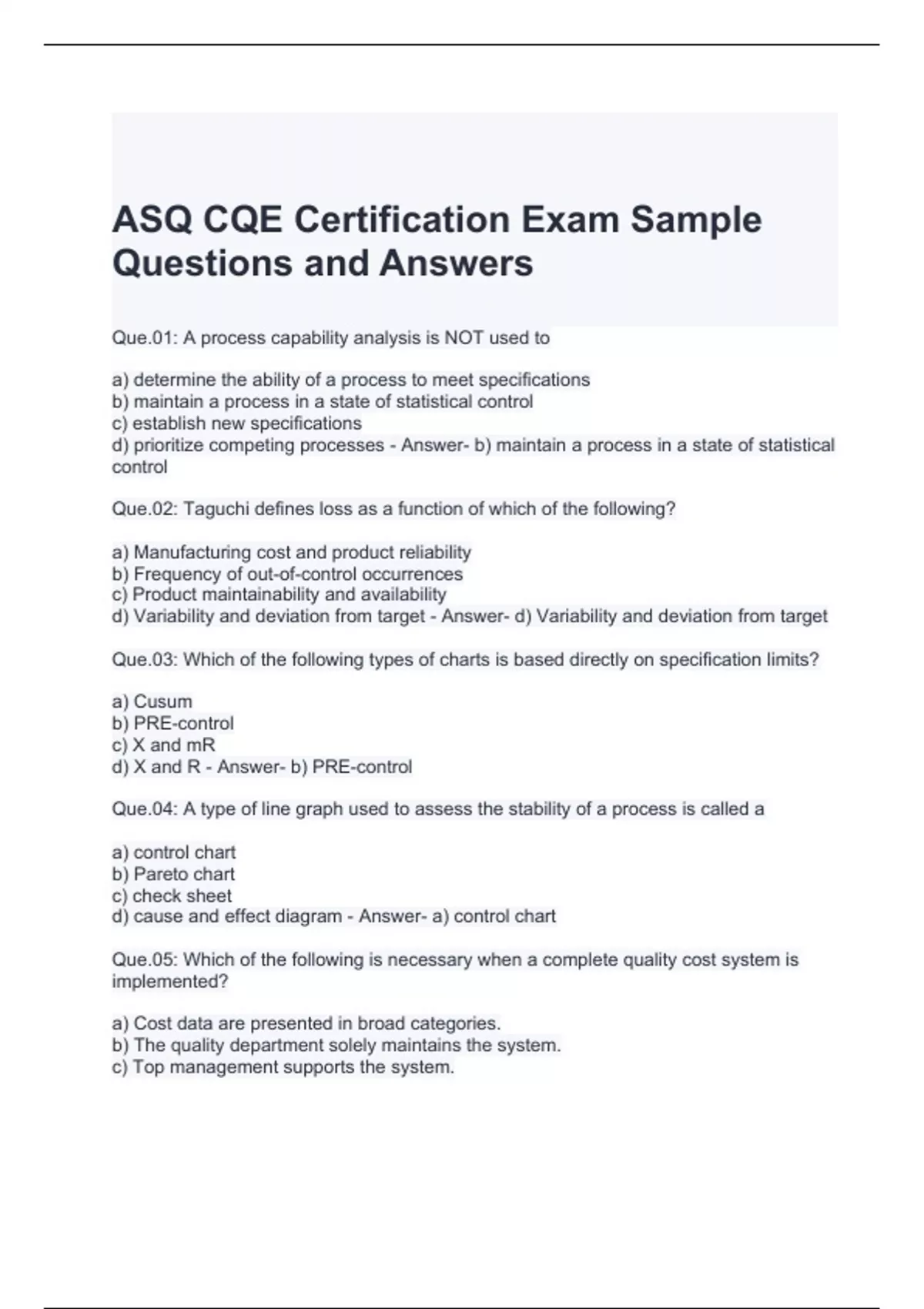 ASQ CQE Certification Exam Sample Questions and Answers 2024/ Graded A