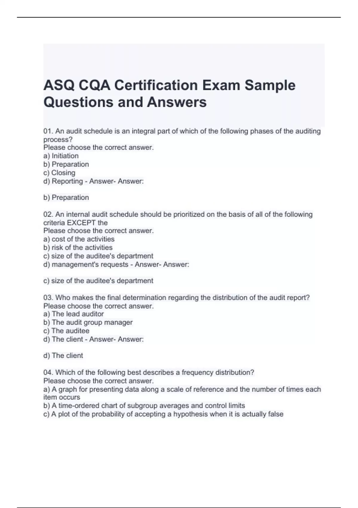ASQ CQA Certification Exam Sample Questions and Answers 100% correct