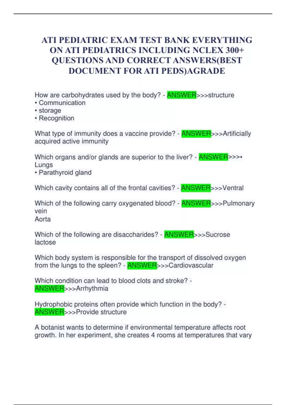 ATI PEDIATRIC EXAM TEST BANK EVERYTHING ON ATI PEDIATRICS INCLUDING NCLEX 300+ QUESTIONS AND CORRECT ANSWERS(BEST DOCUMENT FOR ATI PEDS)AGRADE