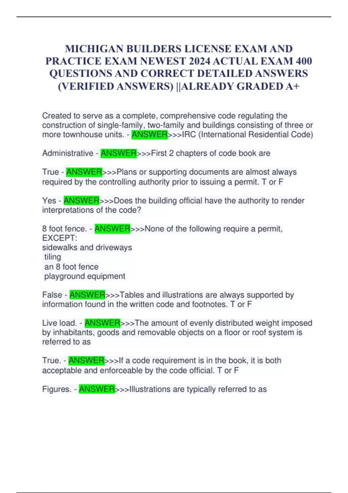 MICHIGAN BUILDERS LICENSE EXAM AND PRACTICE EXAM NEWEST 2024 ACTUAL EXAM 400 QUESTIONS AND CORRECT DETAILED ANSWERS (VERIFIED ANSWERS) ||ALREADY GRADED A+