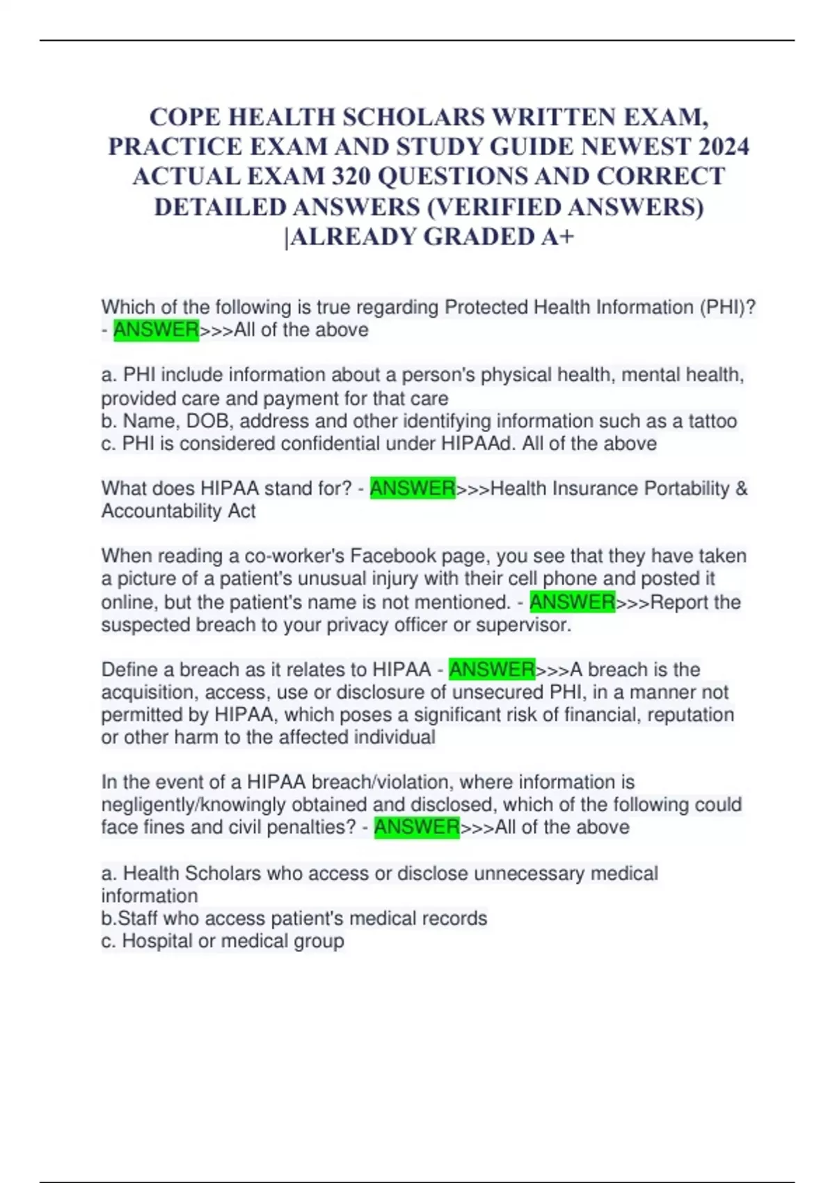 COPE HEALTH SCHOLARS WRITTEN EXAM, PRACTICE EXAM AND STUDY GUIDE NEWEST 2024 ACTUAL EXAM 320 QUESTIONS AND CORRECT DETAILED ANSWERS (VERIFIED ANSWERS) |ALREADY GRADED A+