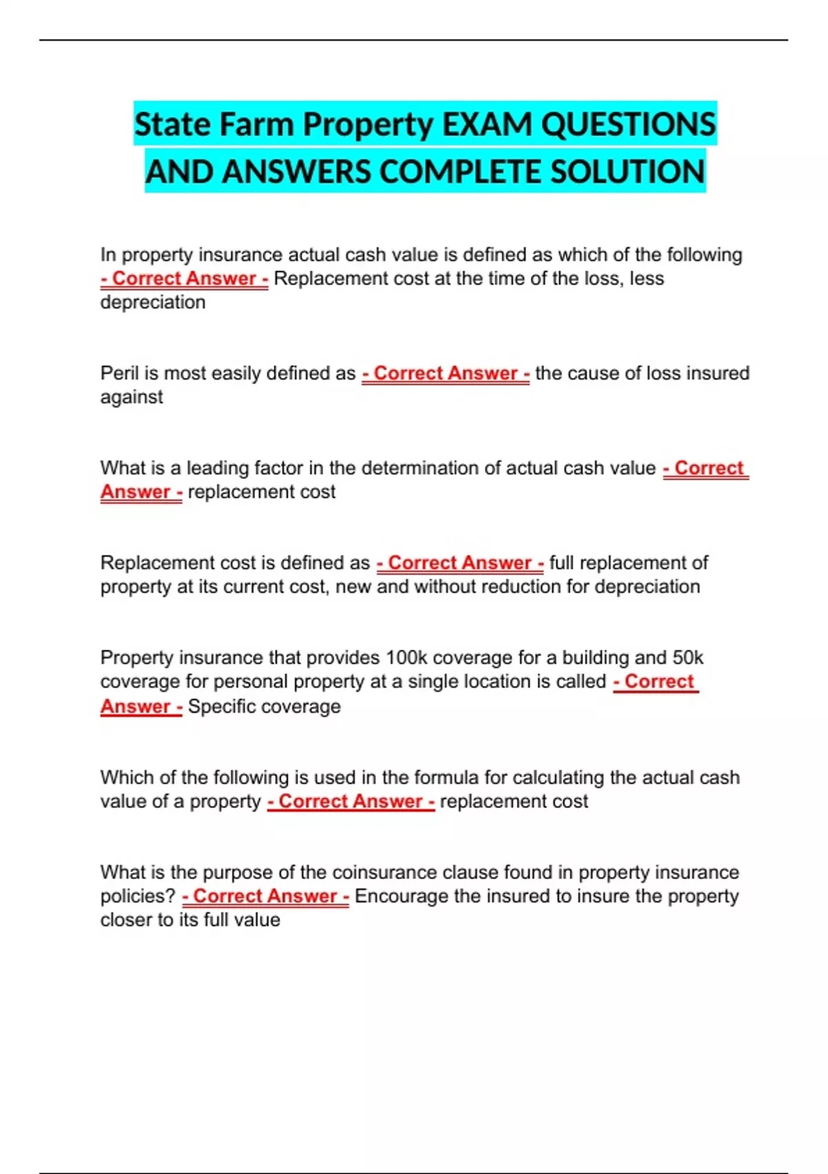State Farm Property EXAM QUESTIONS AND ANSWERS COMPLETE SOLUTION State Farm Property EXAM QUESTIONS AND ANSWERS COMPLETE SOLUTION State Farm Property EXAM QUESTIONS AND ANSWERS COMPLETE SOLUTION