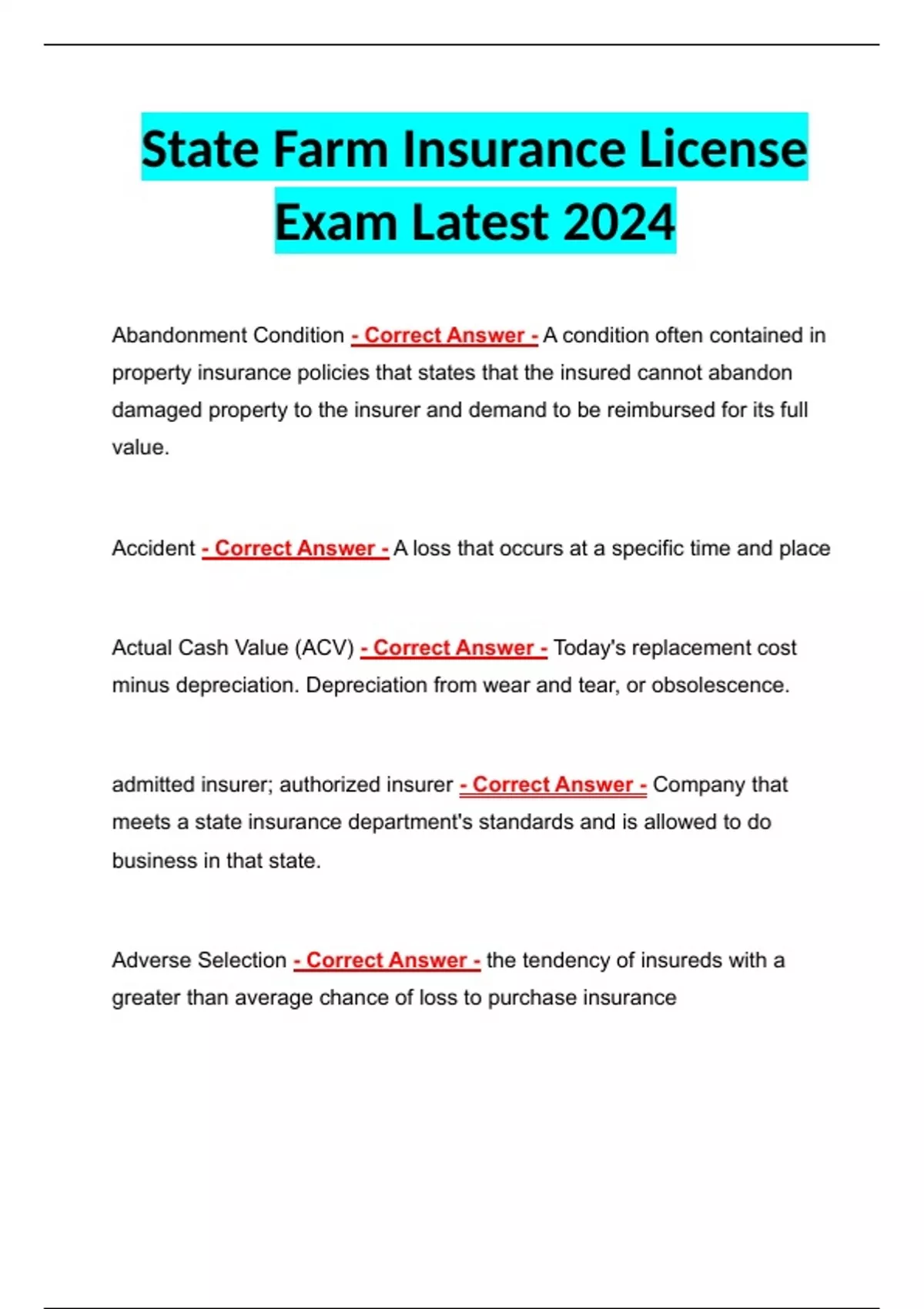 State Farm Insurance License Exam Latest 2024 State Farm Insurance License Exam Latest 2024 State Farm Insurance License Exam Latest 2024