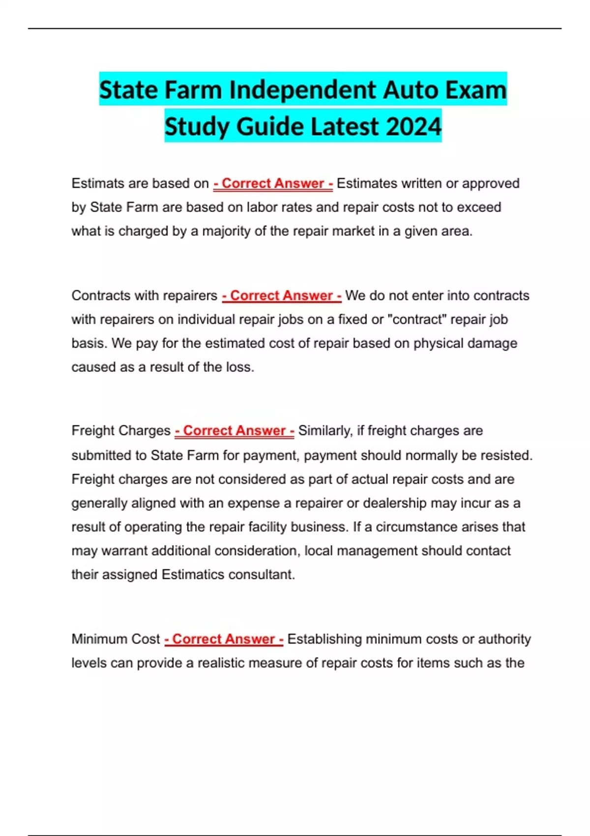 State Farm Independent Auto Exam Study Guide Latest 2024 State Farm Independent Auto Exam Study Guide Latest 2024 State Farm Independent Auto Exam Study Guide Latest 2024