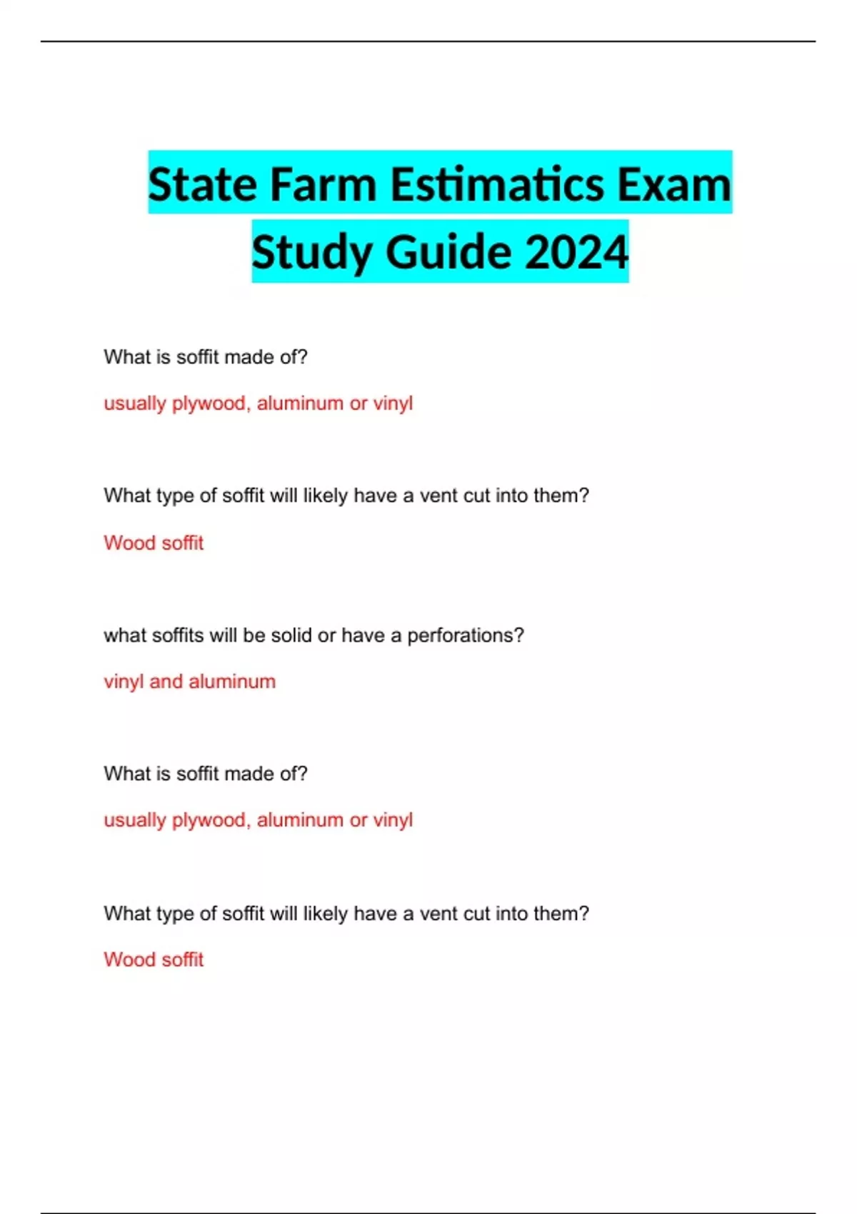 State Farm Estimatics Exam Study Guide 2024 State Farm Estimatics Exam Study Guide 2024 State Farm Estimatics Exam Study Guide 2024