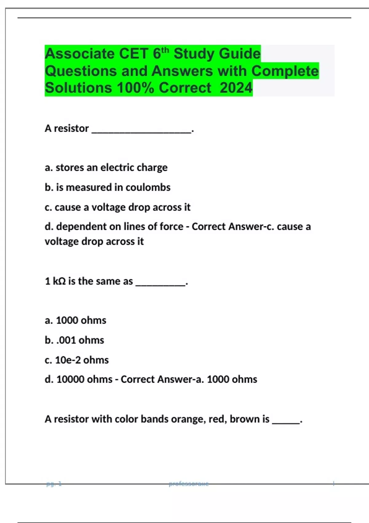 Associate CET 6th Study Guide Questions and Answers with Complete Solutions 100% Correct 2024