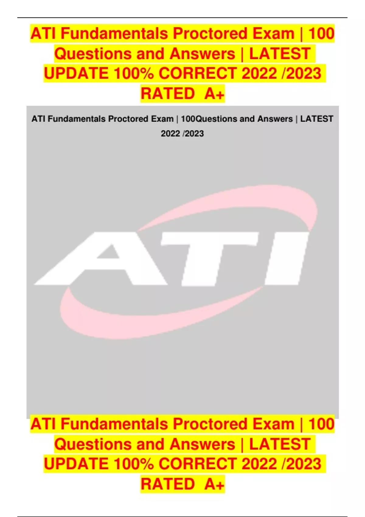 ATI Fundamentals Proctored Exam | 100 Questions and Answers | LATEST UPDATE 100% CORRECT 2022 / 2023 RATED A+
