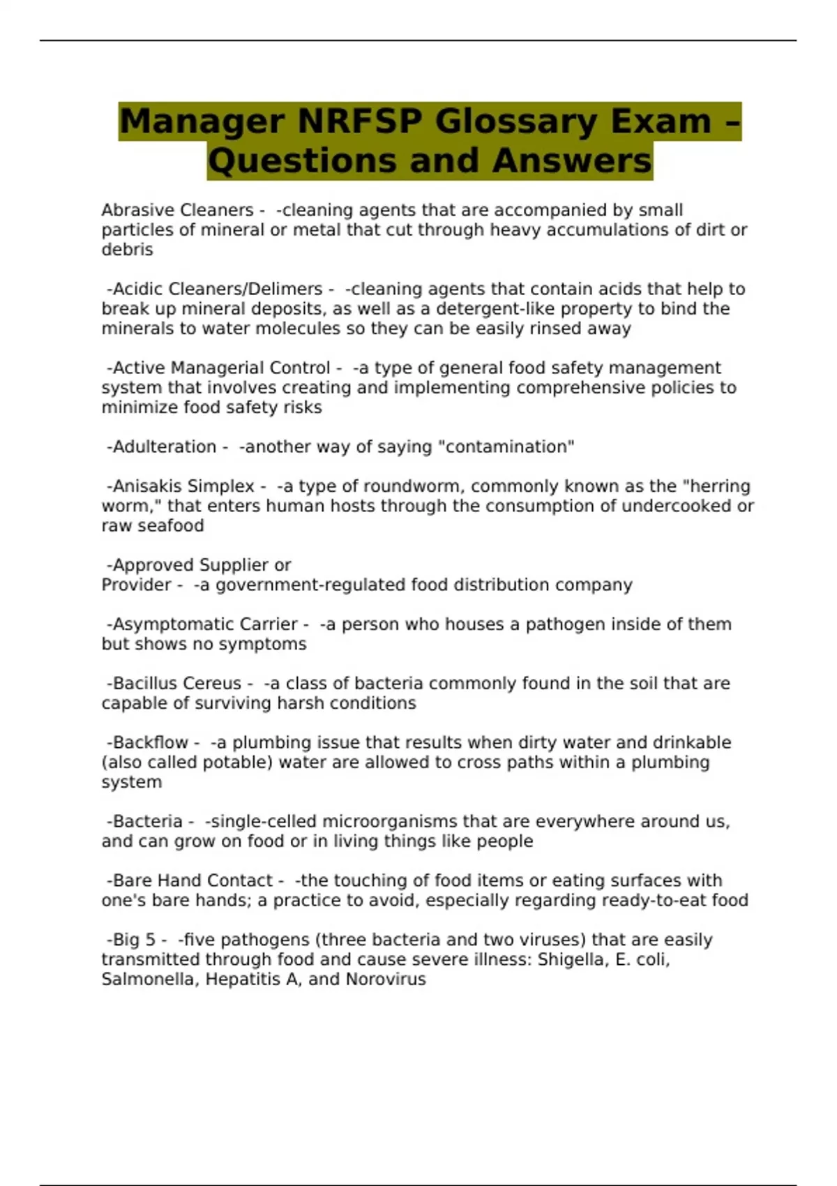 NATIONAL REGISTRY OF FOOD SAFETY PROFESSIONALS (NRFSP) EXAMS