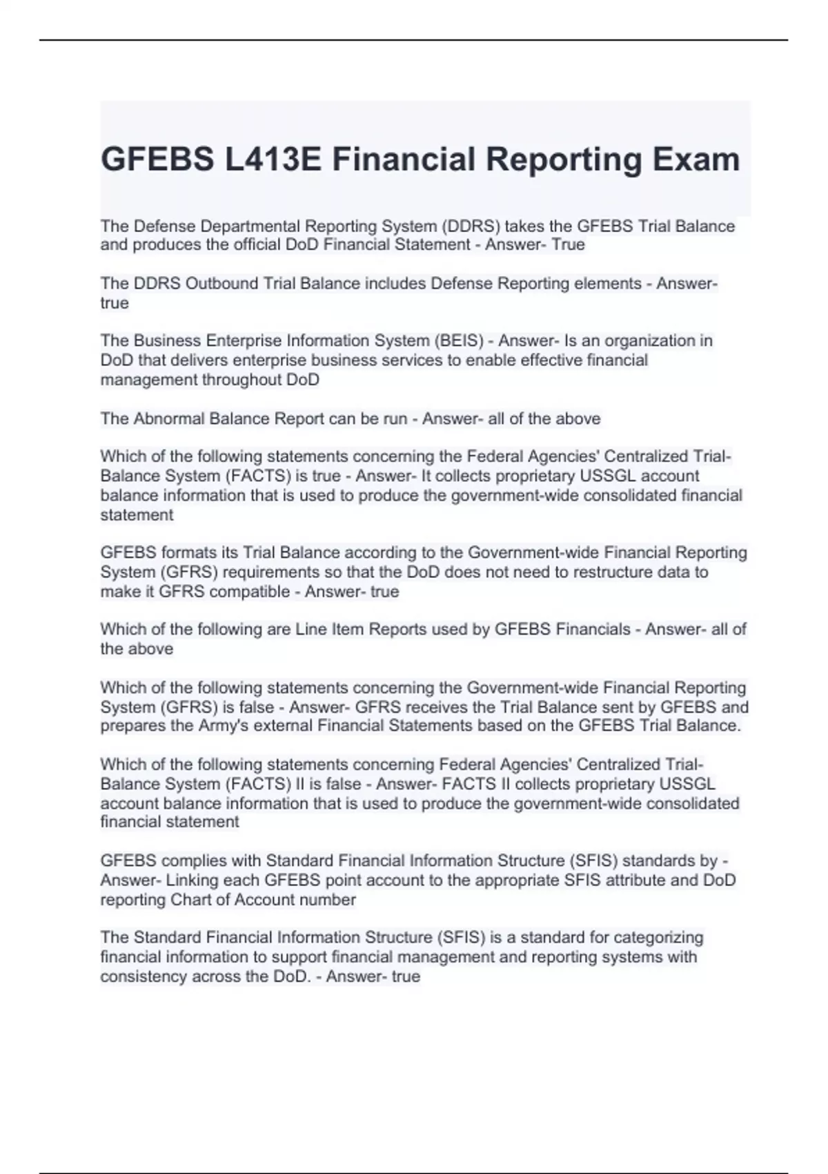 GFEBS L413E Financial Reporting Exam with Verified Answers