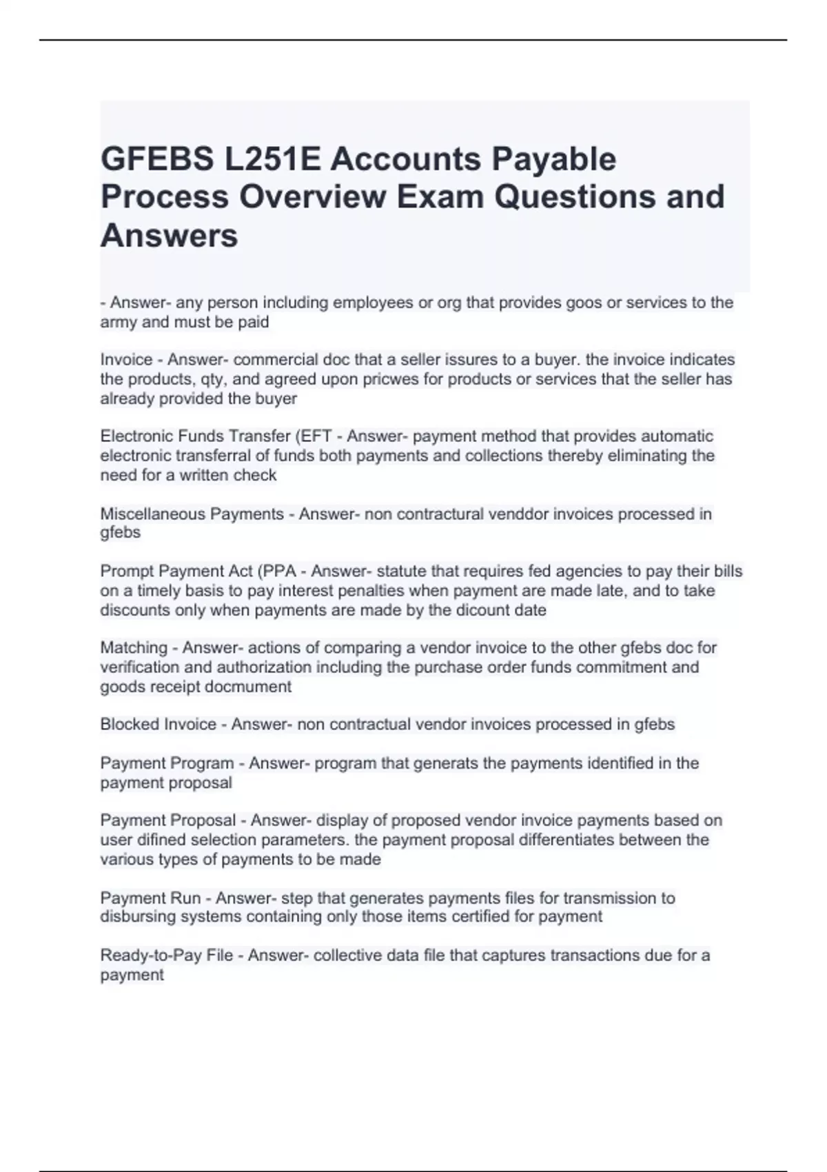 GFEBS L251E Accounts Payable Process Overview Exam Questions and Answers